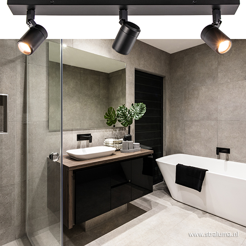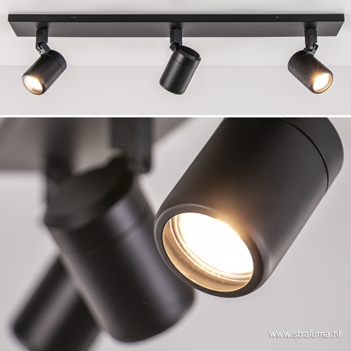 Homepagina / Lampen / Nachtkastlampen / Plafondspot Rain 3L balk zwart gu10 IP44