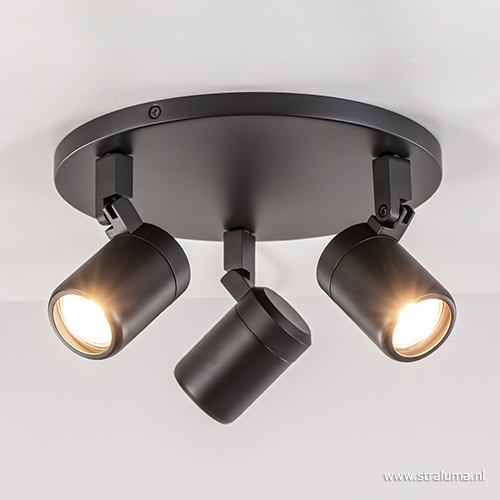 Homepagina / Lampen / Nachtkastlampen / Plafondspot Rain 3L rond zwart IP44