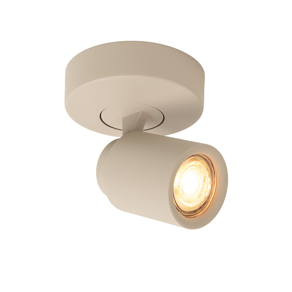 Details: – Afmetingen: ø11 x 11 cm – Kap: Ø6,5 x 9 cm – Bevestiging: Ø11 x 3 cm – Materiaal: metaal – Kleur: zand – Verstelbaar: draaien & kantelen – Fitting: GU10 (excl. lichtbron) – Dimbaar middels externe dimmer (Excl.)