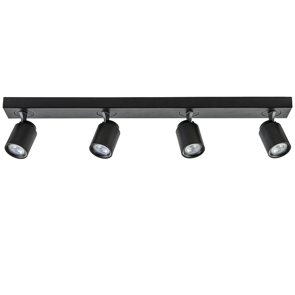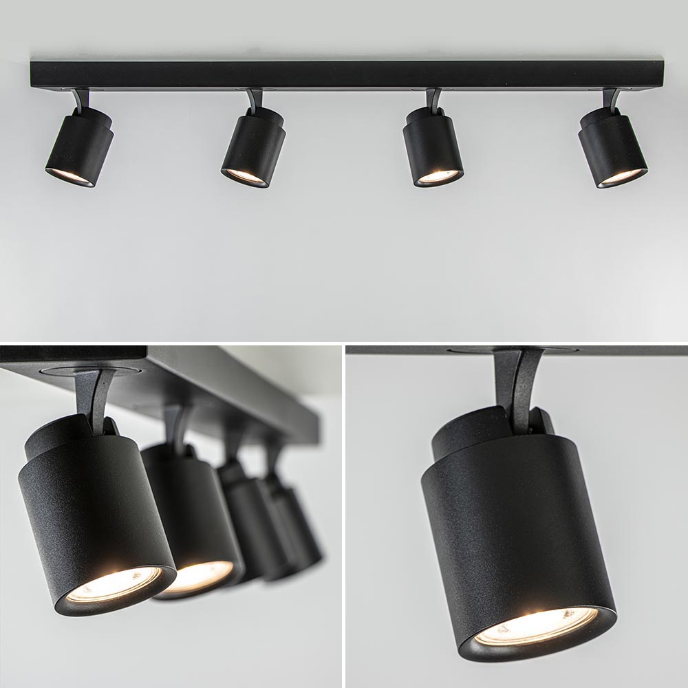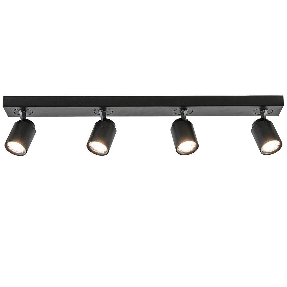 Ideaal voor in de lange hal of slaapkamer. Deze langwerpige opbouwspot is gemakkelijk toe te passen in diverse woonstijlen. De 4-lichts plafondlamp is gemaakt van metaal en uitgevoerd in het mat zwart. De vier spotjes zijn gemakkelijk te verstellen door deze te draaien of te kantelen. Zo kunt u gemakkelijk de juiste richting bepalen en zo een donkere hoek of object uitlichten. De mat zwarte plafondspot wordt geleverd zonder lichtbron. De lichtbron kan worden geplaatst door de volledige kap van de spot los te draaien.