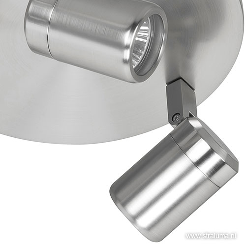 – draaibaar / kantelbaar – hoogte 12 cm – doorsnede 25 cm – spotje 8,5 cm lang, doorsnede 5,5 cm – IP44 – maximale wattage 35W – fitting GU10 – excl. lichtbron – dimbaar, exclusief dimmer – geschikt voor energiezuinige lichtbronnen