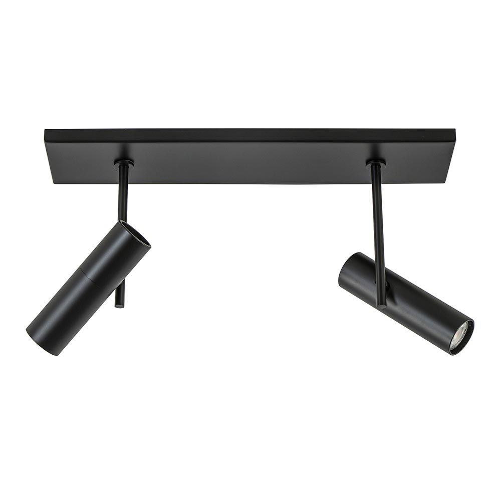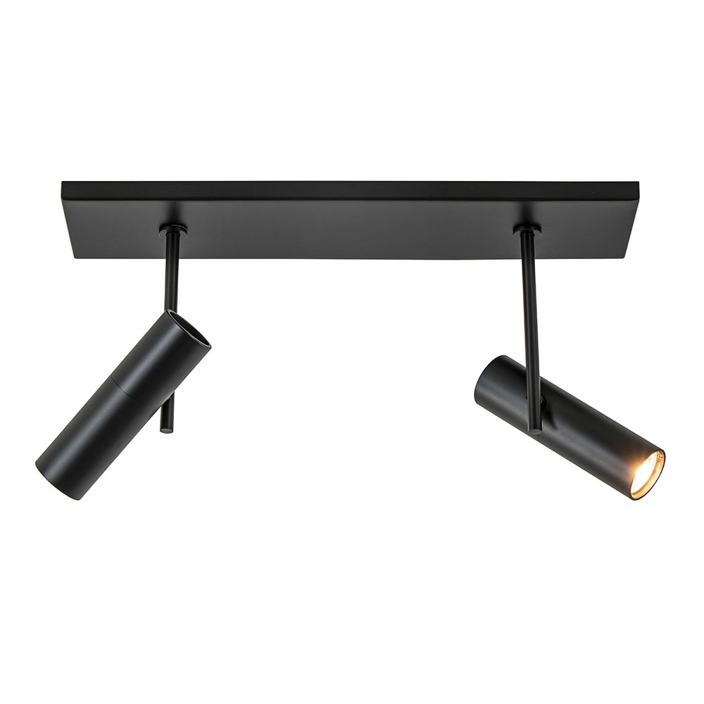 Strak van design en functioneel in gebruik. Deze 2-lichts opbouwspot is een perfecte aanvulling voor een hal, slaapkamer of overloop. De 2-lichts plafondlamp is voorzien van smalle cilinder-vormige spots die naar wens zijn te verstellen door deze gemakkelijk te draaien en/of kantelen. De spots zijn gemonteerd op een balk van 40 cm lang, beide gemaakt van metaal en uitgevoerd in het zwart. De lichtbron kan gemakkelijk worden geplaatst door de cilinders open te draaien.