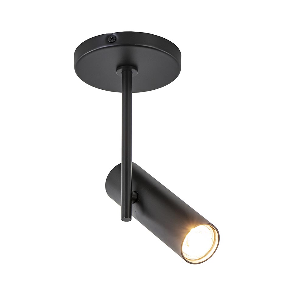 Een mooie opbouwspot met een hoog design gehalte. De 1-lichts plafondspot heeft een smal design wat zorgt voor een moderne look. De cilinder-vormige kap kan worden versteld door deze te draaien en/of te kantelen. Ideaal voor het uitlichten van een donkere hoek of object. De moderne opbouwspot is gemaakt van metaal en uitgevoerd in het mat zwart. De cilinder kan worden opengedraaid zodat de lichtbron gemakkelijk kan worden geplaatst.