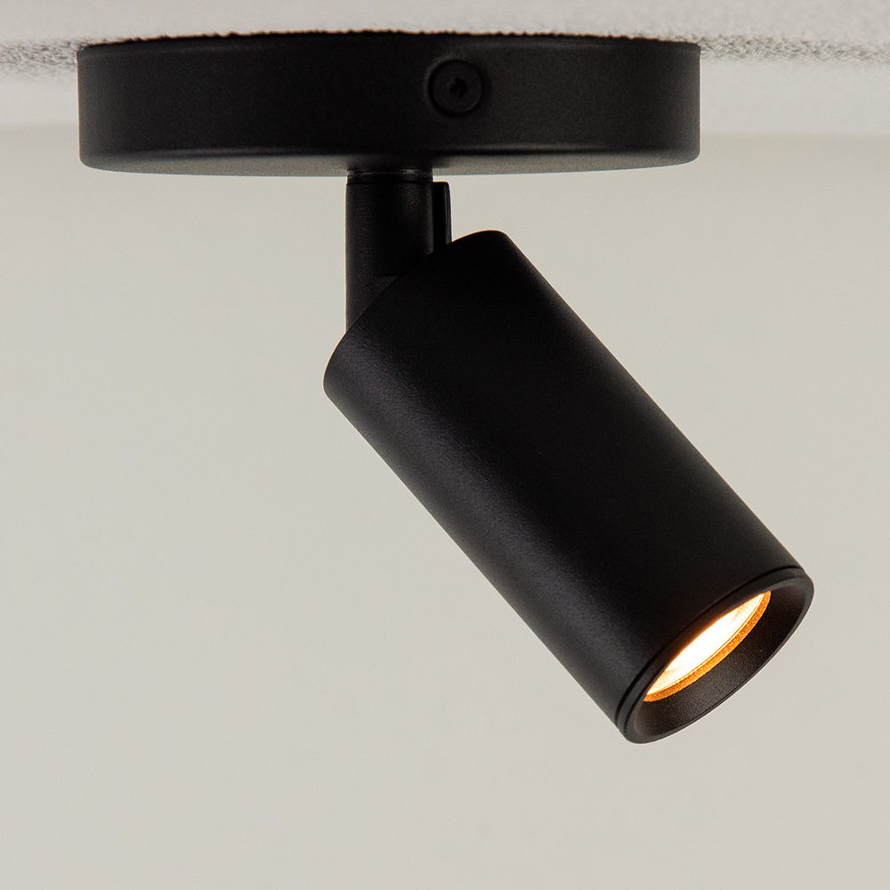 Deze strakke, minimalistische spotlamp in matzwart is een veelzijdige oplossing voor elke ruimte. Dankzij het compacte ontwerp en de draaibare spot is de lamp perfect te richten op de plek waar jij licht nodig hebt. Of je hem nu aan het plafond of aan de muur monteert, deze spotlamp zorgt voor een moderne uitstraling en functionele verlichting.