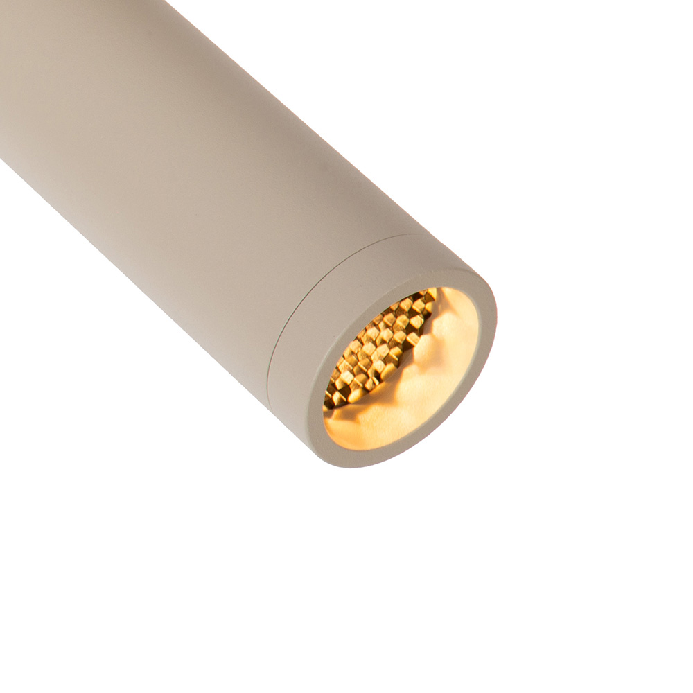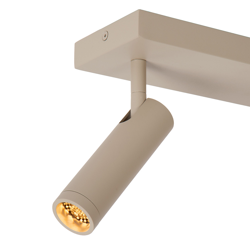Deze strakke en moderne 2-lichts spotlamp in een stijlvolle matte beige kleur is een elegante en functionele toevoeging aan elk interieur. Het minimalistische ontwerp met cilindervormige spots maakt deze lamp uitermate geschikt voor gebruik in de keuken, hal, woonkamer of werkkamer. Beide spots zijn afzonderlijk richtbaar, zodat je eenvoudig specifieke delen van de ruimte kunt accentueren. Door het kleine grid die voor elke lichtbron zit, wordt de verspreiding van het licht gecontroleerd, waardoor er een smallere licht bundel ontstaat. Dit zorgt ervoor dat je het licht kan focussen op een specefiek punt, denk hierbij bijvoorbeeld aan het uitlichten van een schilderij of sculptuur. Dankzij het neutrale design past deze spotlamp moeiteloos in zowel moderne als Scandinavische interieurs..