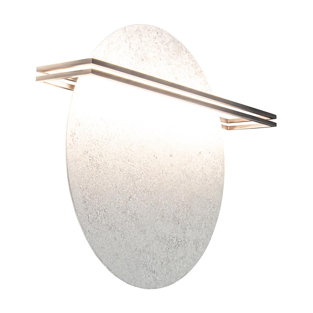 Deze prachtige led lamp kan zowel een wandlamp als een plafondlamp zijn. Deze mooie led lamp bestaat uit een ronde metalen plaat met twee donkere metalen balken. In deze balken zit een led strip die schijnt op de zilveren plaat. Deze lamp is een echte eyecatcher met een prachtig minimalistisch ontwerp. De design lamp is te draaien zodat u zelf de gewenste positie bepaald voor de gewenste look. Ook kunt u kiezen om de LED strips uit het midden te plaatsen of precies in het midden van de plaat. Dit bepaald u voordat u de lamp monteert.