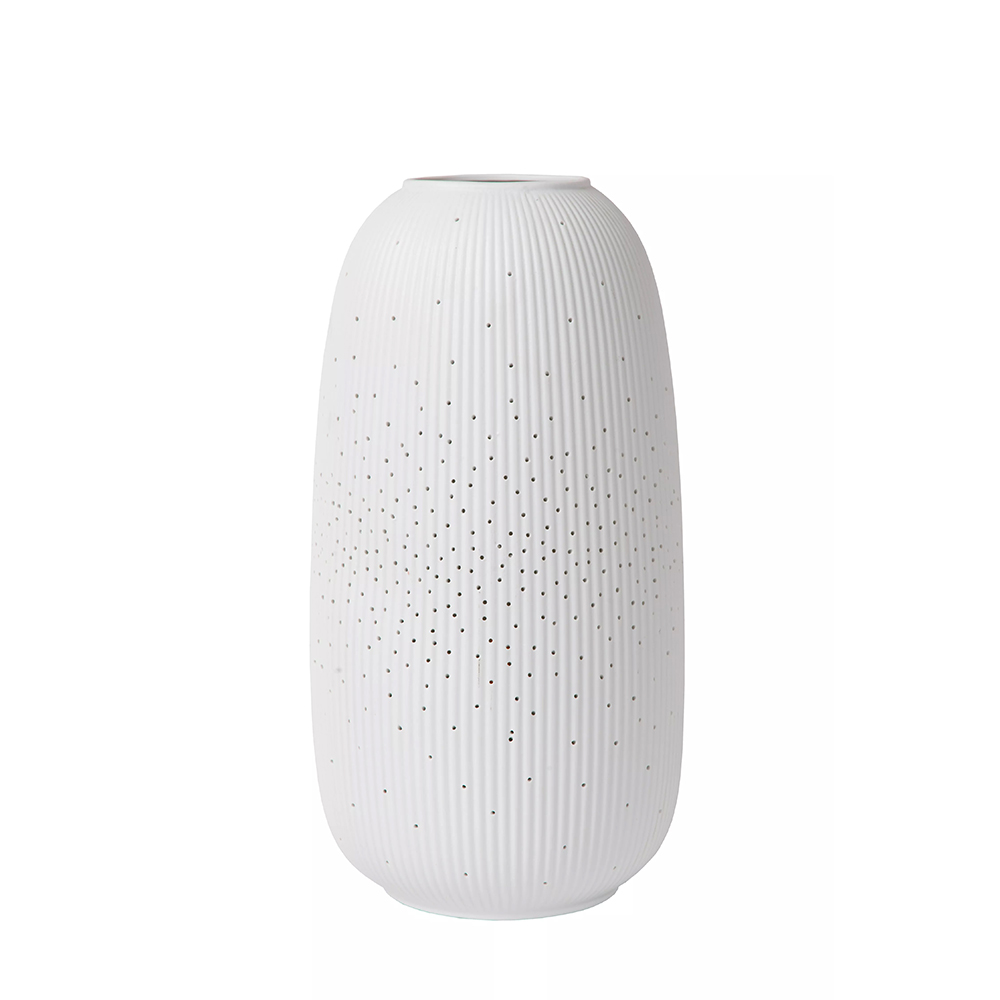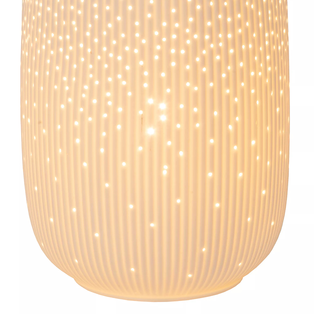 Perfect voor een babykamer of gezellig als extra sfeerlicht in de woonkamer. Deze tafellamp is vervaardigd uit hoogwaardig porselein en uitgevoerd in het wit. Het porselein is voorzien van kleine gaatjes waardoor er een soort sterrenhemel ontstaat wanneer de lamp wordt ingeschakeld. Door het formaat past de lamp prima op een commode, kast of bijzettafeltje.