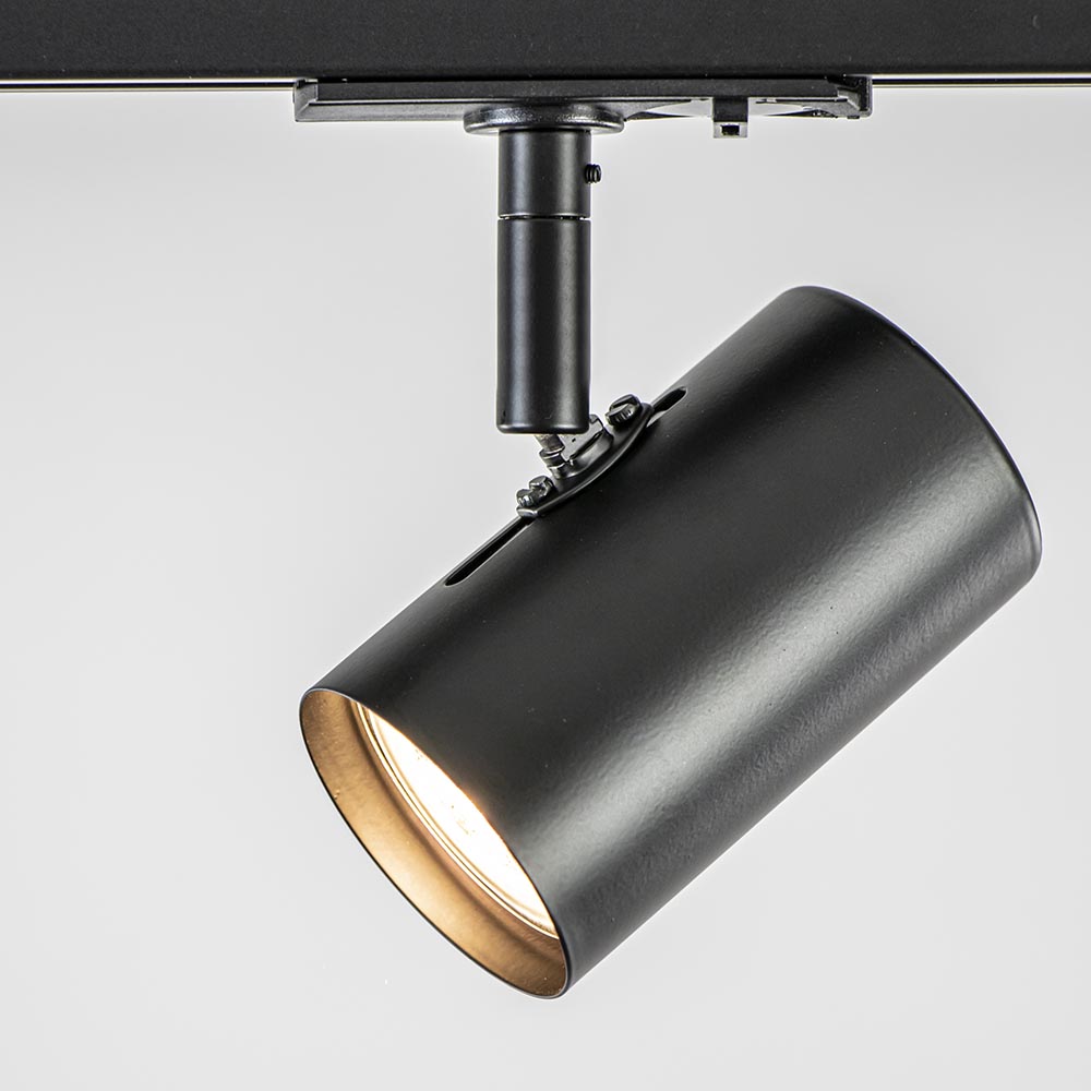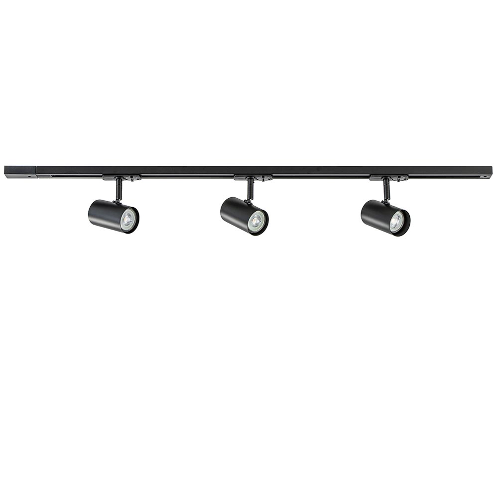 Ideaal om een ruimte extra uit te lichten of meer sfeer aan te brengen. Dit 1-fase railsysteem wordt geleverd inclusief 3 spots, beide uitgevoerd in het zwart. De rail heeft een lengte van 100 cm waar de spots gemakkelijk op kunnen worden verdeeld. Druk de spot in de rail en zet hem vast door de knop om te zetten. De spots kunnen verder nog draaien en kantelen. Bepaal dus zelf hoe u het licht wilt verspreiden. Het railsysteem heeft 1-fase, dit houdt in dat alle lampen tegelijk zullen worden in- en uitgeschakeld. Handig voor in een lange hal of slaapkamer, maar ook in de keuken of woonkamer past dit systeem perfect. De smalle rail en de cilindervormige spots geven een strak en modern geheel aan de ruimte. Het zwarte railsysteem is dimbaar met een externe dimmer.