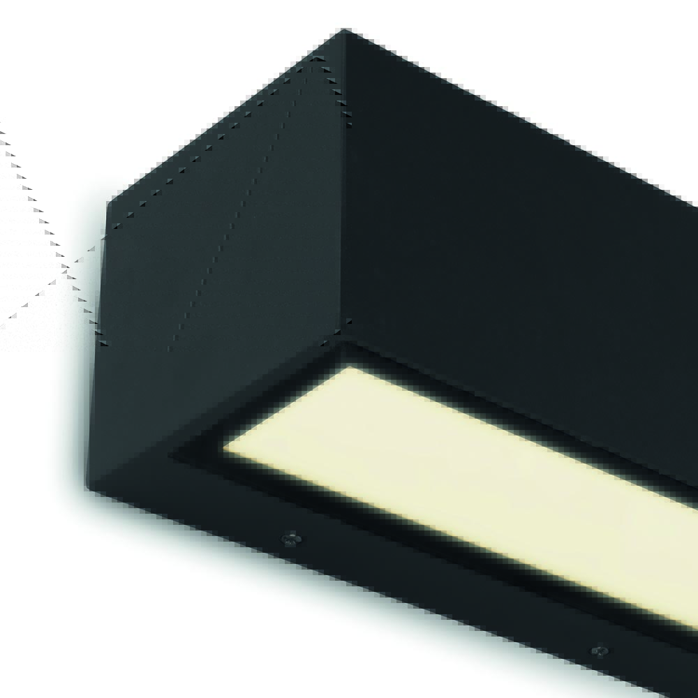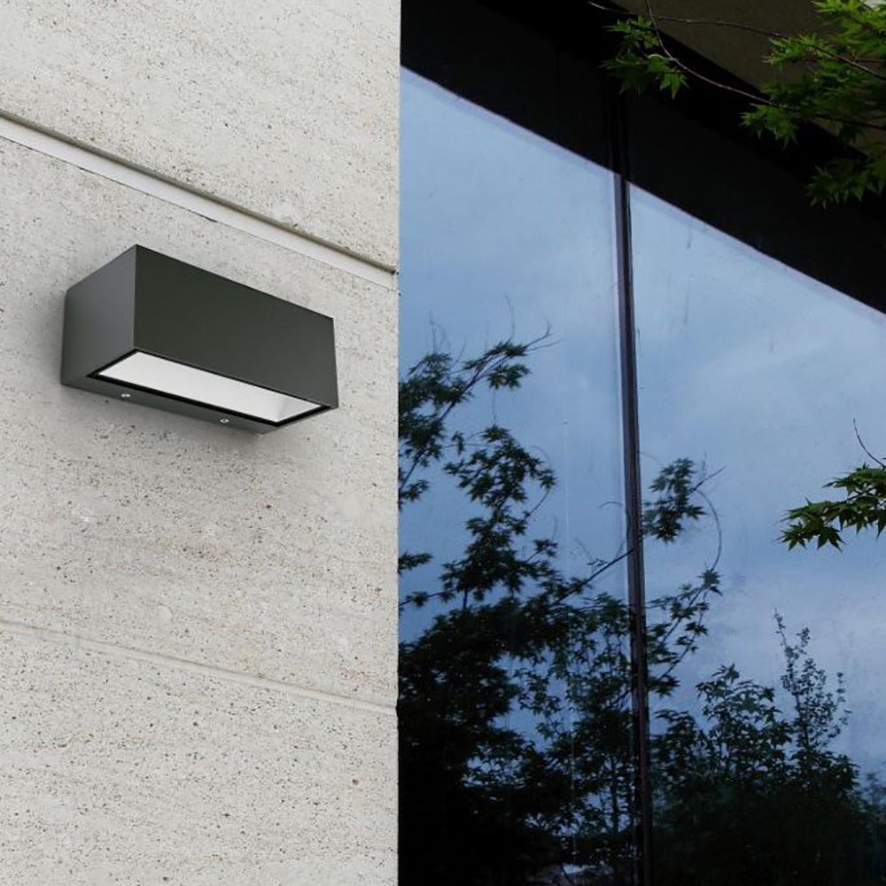 Een strak en minimalistisch design met een groots effect. Deze rechthoekige buitenlamp is voorzien van geïntegreerd LED dat mooi verspreid op de ondergrond. De buitenlamp is namelijk een up + downlighter. Het licht wordt dus zowel naar boven als beneden verspreid. Dit creëert een zandlopereffect op de ondergrond als het huis, de schuur of een schutting. De buiten wandlamp is gemaakt van aluminium en afgewerkt met helder glas. Doordat de buitenlamp helemaal dicht is, is deze IP54 goedgekeurd.