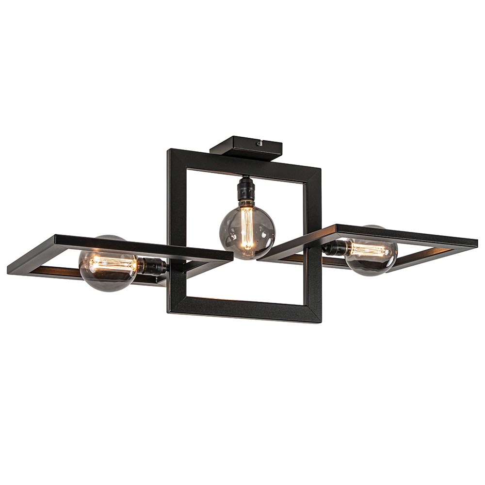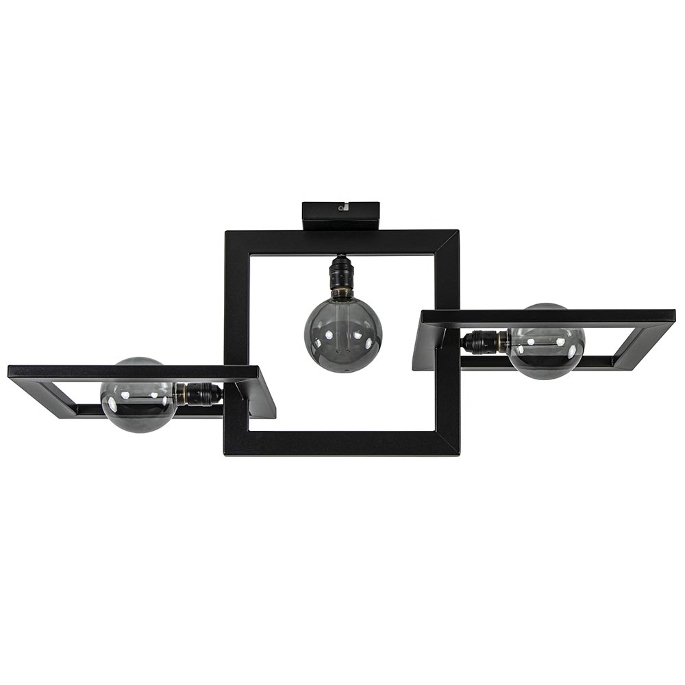 Een stoer design, met de hand vervaardigd op Hollandse bodem. Deze plafondlamp is gemaakt van metaal en prachtig in elkaar gezet. De drie vierkanten zijn haaks op elkaar gelast en zijn allen voorzien van een E27 fitting. Het metalen frame heeft een dikte van 4×2 cm en is afgewerkt met een mat zwarte finish. De design plafondlamp wordt bevestigd met een plaat van 12×12 cm en is dimbaar middels een externe dimmer (exclusief). De lichtbronnen worden niet standaard meegeleverd.