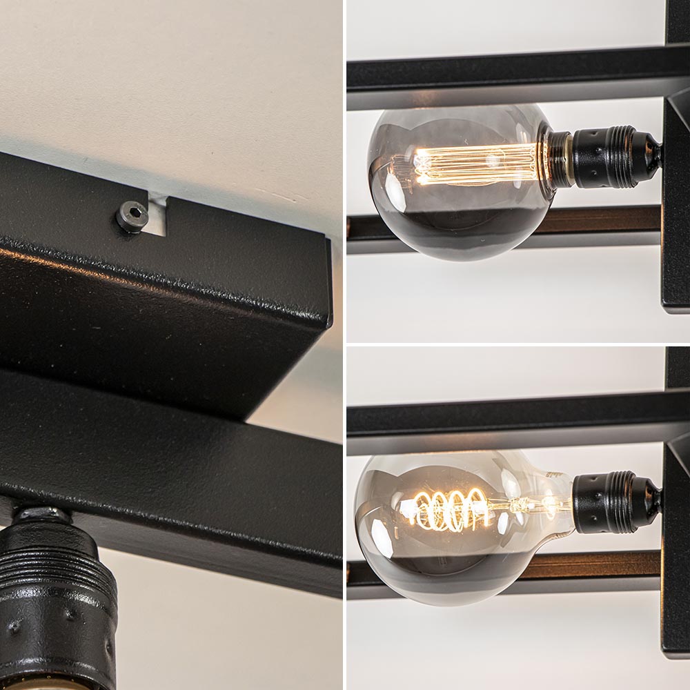 – afm: 98x37x40 cm – bevestiging: 12x12x3 cm – metaal – mat zwart – frame dikte: 4×2 cm – exclusief lichtbron (3x E27) – dimbaar (exclusief)