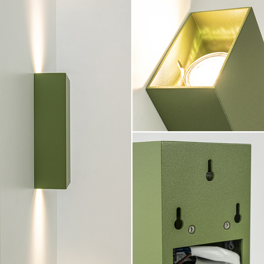 Een ideale sfeermaker die prima geschikt is voor iedere ruimte. Deze rechthoekige wandlamp zorgt voor een sfeervol effect op de wand en in de ruimte. De wandlamp is gemaakt van metaal en uitgevoerd in het groen. Dit geeft de wandlamp een retro/vintage look die mooi past in diverse woonstijlen. De wandlamp is van binnen voorzien van 2 GU10 lichtpunten. Deze verlichten zowel naar boven als beneden. De groene wandlamp is niet voorzien van een snoer en wordt geleverd exclusief lichtbron. De rechthoekige up+downlighter kan gemakkelijk aan schroeven worden opgehangen.