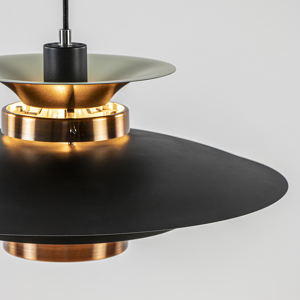 – afm: Ø50×145 cm – kap: Ø50×25 cm – bevestiging: Ø12×2 cm – metaal – zwart/koper – in hoogte verstelbaar – exclusief lichtbron (E27) – dimbaar (exclusief)