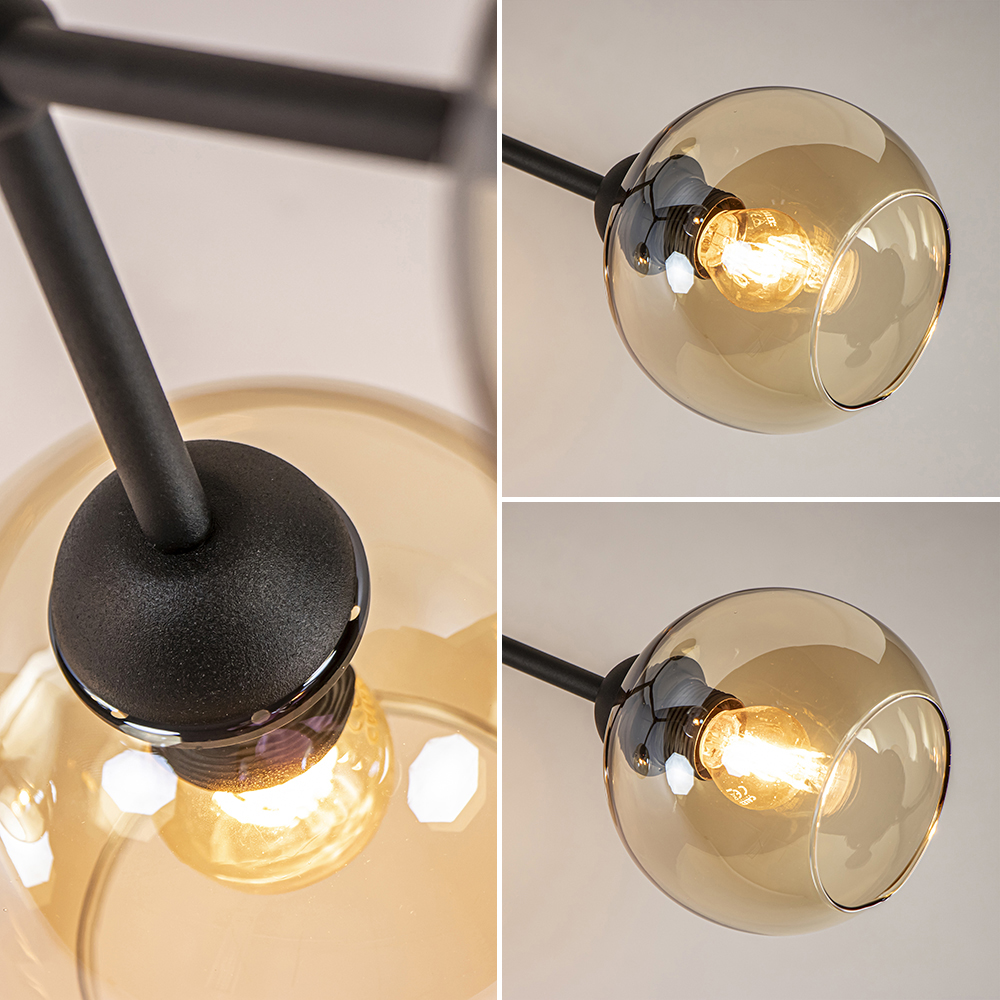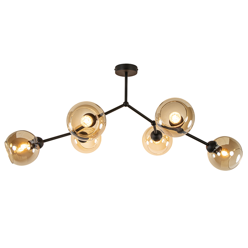Homepagina / Lampen / Plafondlampen / Retro plafondlamp 6-lichts zwart met amber glas
