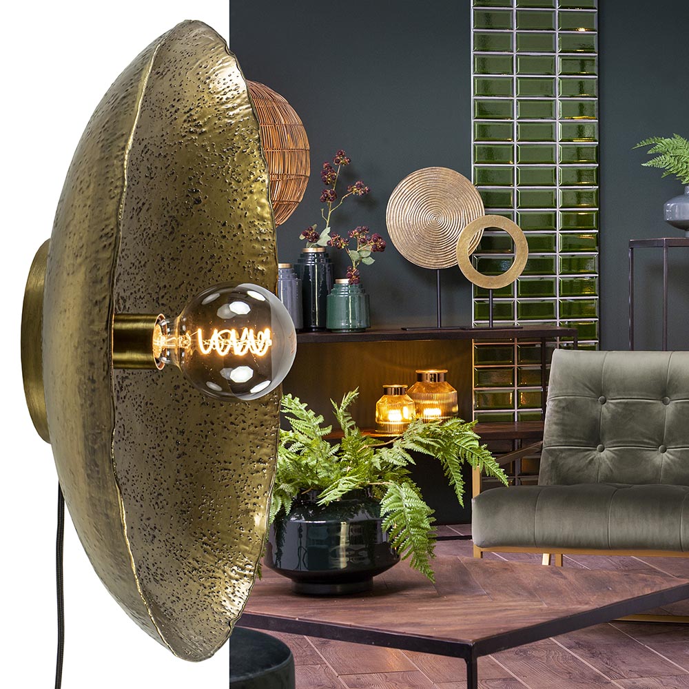 – afm: Ø50×12 cm – metaal – antiek brons – inclusief zwart snoer: 180 cm – exclusief lichtbron (E27)