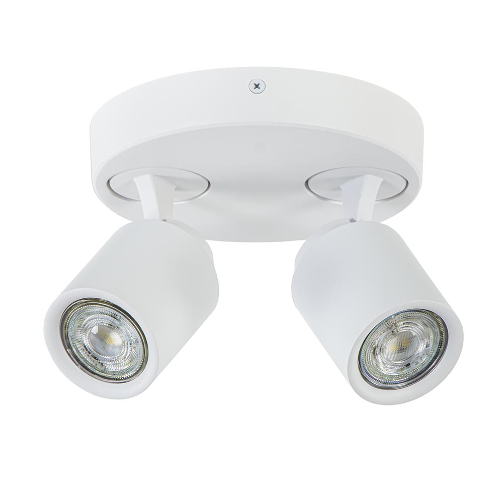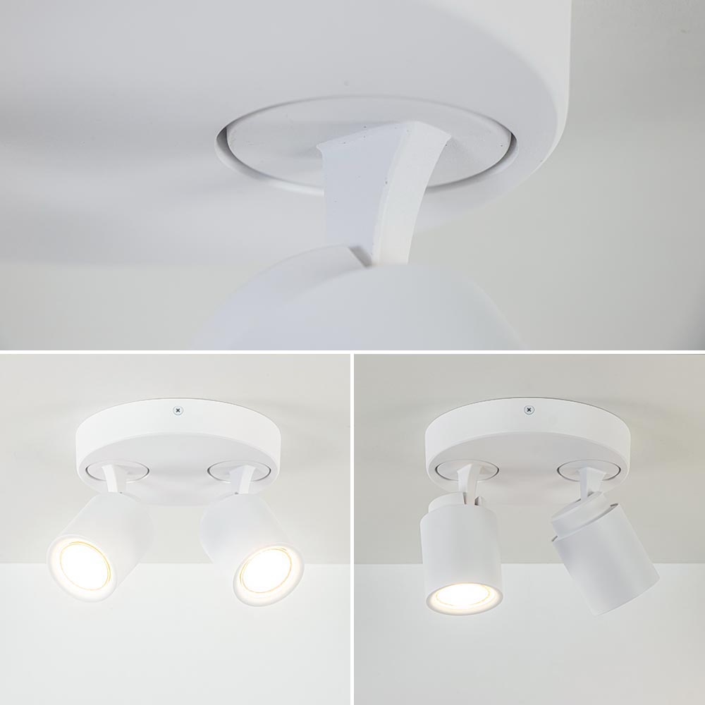 Op zoek naar een elegante plafondlamp? Dan is deze 2-lichts opbouwspot rond echt iets voor u! De witte uitvoering zorgt voor zowel een landelijke als Scandinavische toevoeging aan uw interieur. De ronde opbouwspot is verstelbaar, zo kunnen de kapjes gekanteld en gedraaid worden, zodat u uw eigen draai aan deze spots kan geven. Ideaal voor een hal of slaapkamer. De witte 2-lichts opbouwspot wordt geleverd zonder lichtbron en is dimbaar met een externe dimmer (exclusief). De lichtbron kan worden geplaatst door de volledige kap van de spot los te draaien.