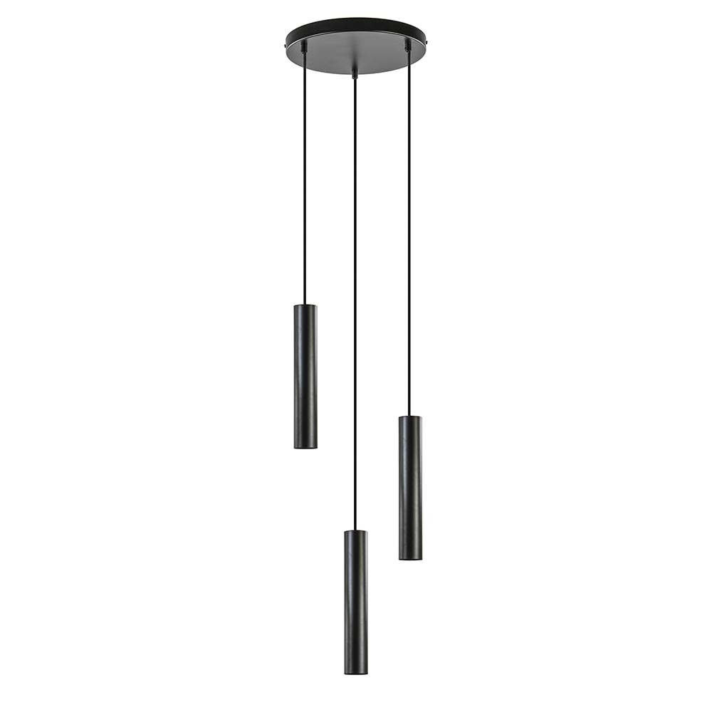 Homepagina / Lampen / Eettafellampen / Ronde 3-lichts hanglamp cilinders mat zwart
