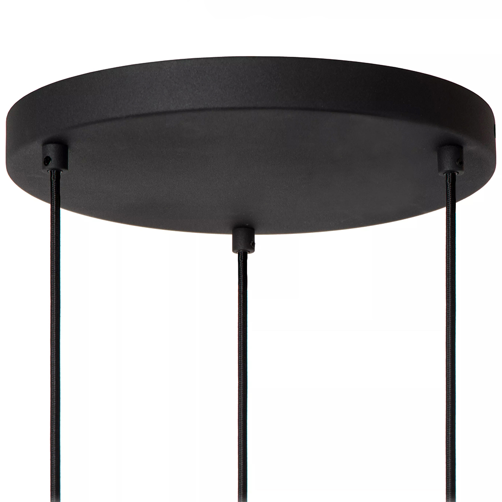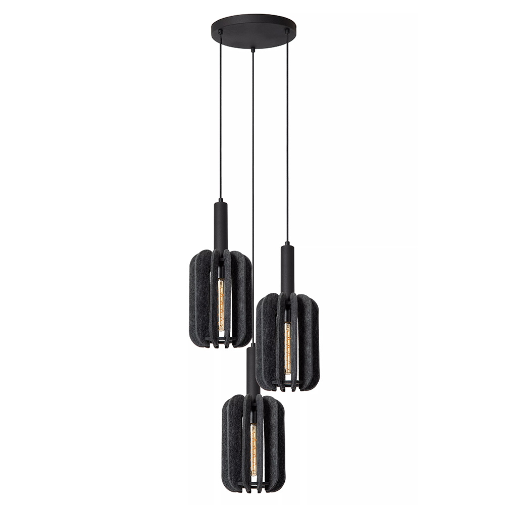 – afm: Ø50×183 cm – bevestiging: Ø30×2,5 cm – kappen: Ø20×30 cm – metaal, mat zwart – vilt, grijs – in hoogte verstelbaar – dimbaar (exclusief) – exclusief lichtbron (3x E27) – gewicht: 2,9 kg