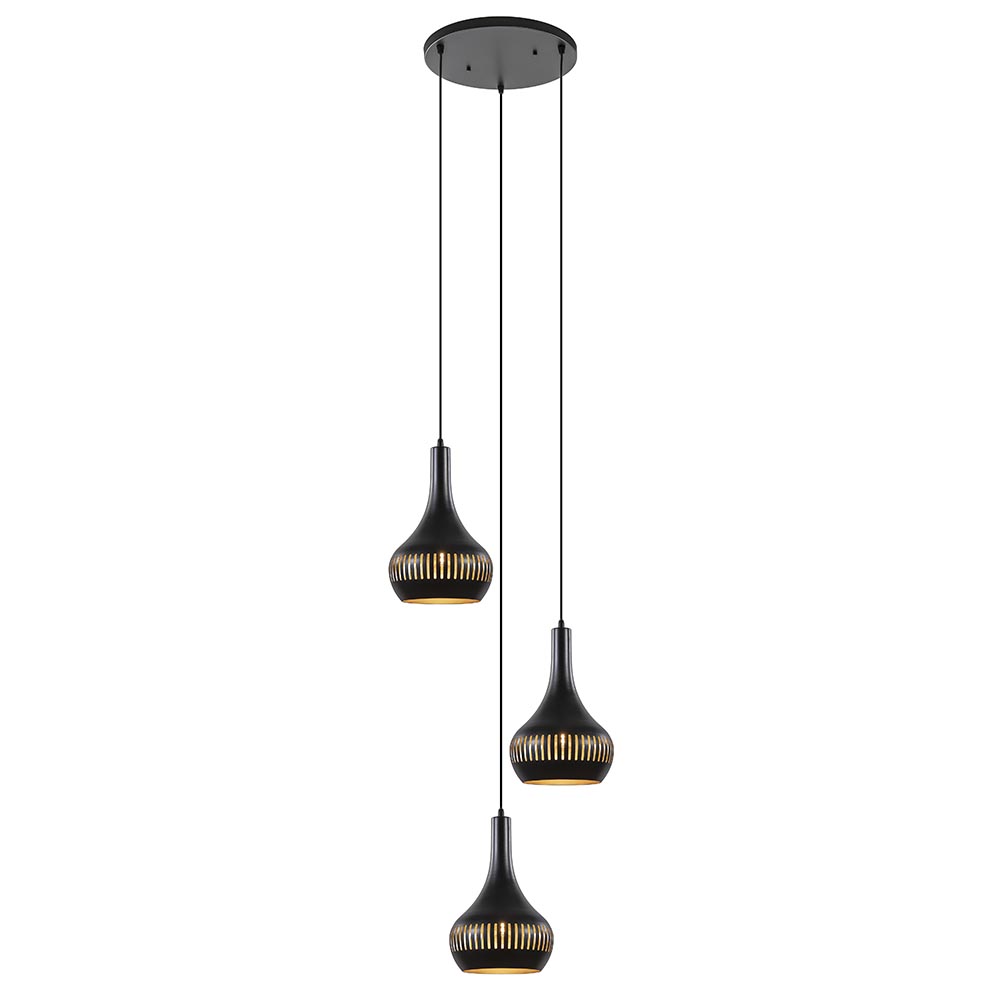 – hoogte: 240 cm – kappen: Ø25×38 cm – bevestiging: Ø40×2,5 cm – metaal – mat zwart/goud – exclusief lichtbron (3x E27) – dimbaar (exclusief)