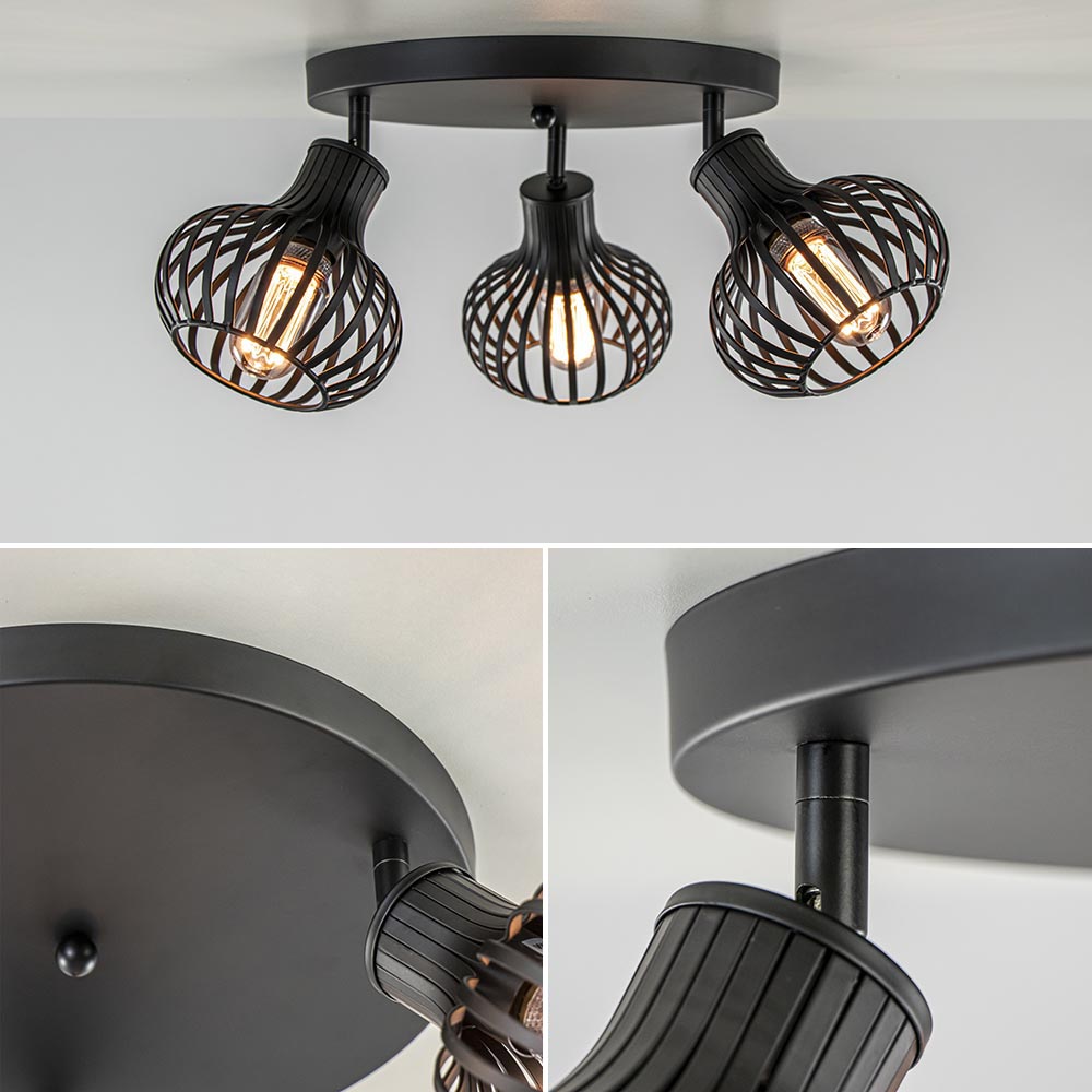 Homepagina / Lampen / Draadlampen / Ronde 3-lichts plafondlamp Daria met verstelbare kappen