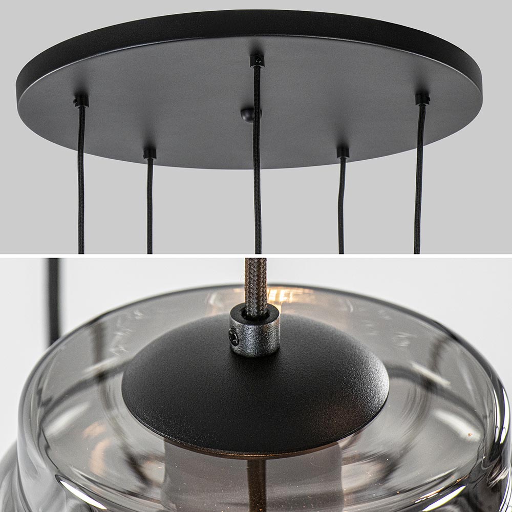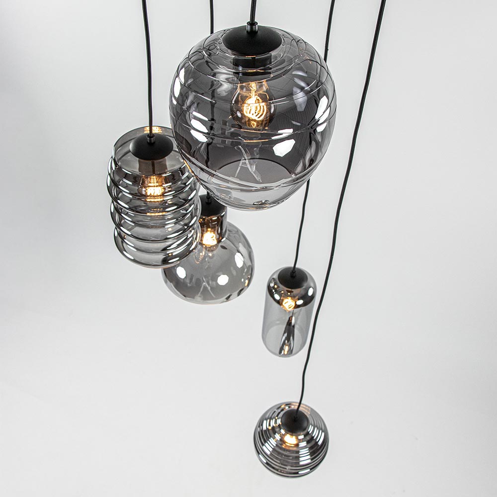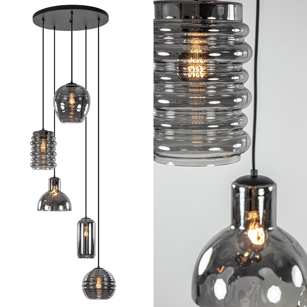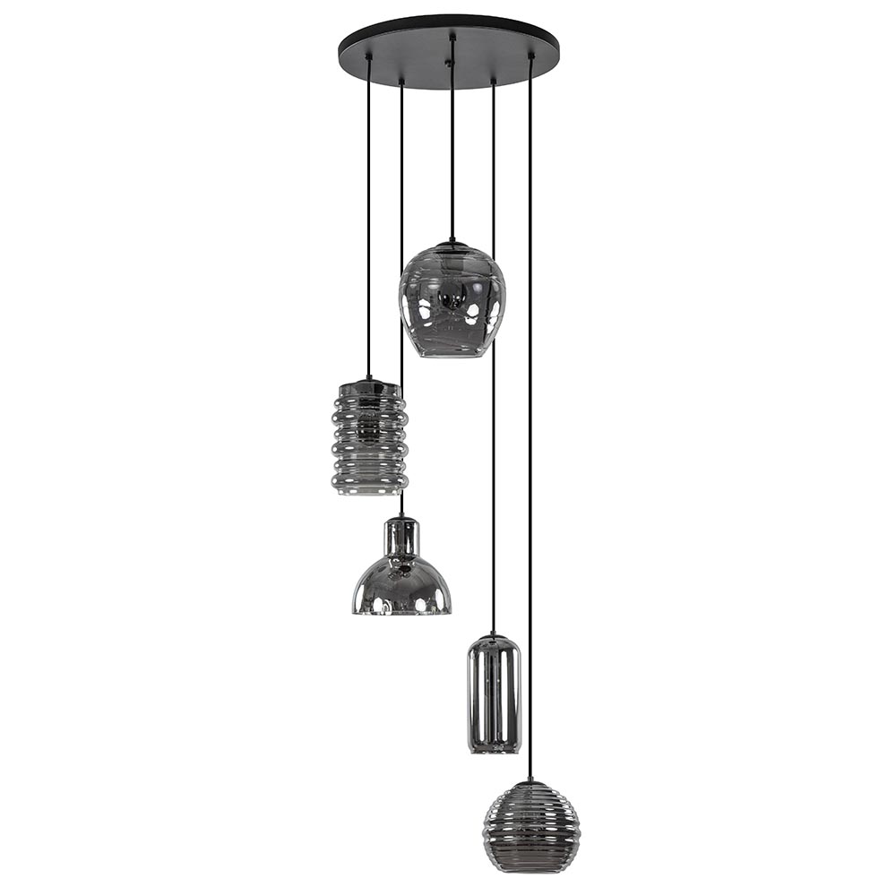 Homepagina / Lampen / Hanglampen / Ronde 5-lichts hanglamp zwart met diverse smoke glazen