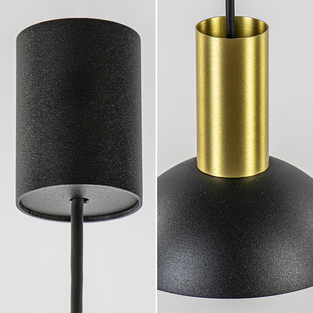 Deze kleine hanglamp maakt het interieur helemaal af. Super leuk boven een bijzettafel of met meerdere boven een salon- of eettafel. De zwart met bronzen hanglamp is voorzien van een spot aan de binnenzijde die het oppervlak onder de lamp goed uitlicht. De hanglamp kan enkel worden opgehangen maar leent zich ook perfect voor maatwerk als multipendel. De kap is gemaakt van metaal en uitgevoerd in het mat zwart met brons. De hanglamp wordt geleverd zonder lichtbron en is dimbaar middels een externe dimmer (exclusief).