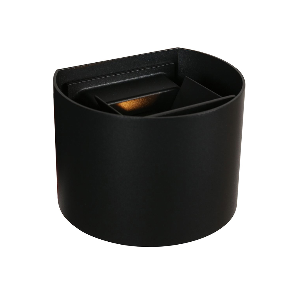 Deze kleine krachtpatser zorgt voor extra sfeer en gezelligheid in uw tuin. De kleine wandlamp is gemaakt van metaal en uitgevoerd in het mat zwart. De ronde wandlamp bestaat uit twee delen, de binnen- en de buitenzijde. De buitenzijde is een losse kap die u gemakkelijk over de binnenzijde heen schuift. De binnenzijde is voorzien van de lichtbron. Dit zijn twee LED modules die samen de verlichting verzorgen. De up+down lighter kunt u zelf instellen door de klepjes aan de binnenzijde te buigen. Zo bepaald u zelf aan welke zijde er meer licht moet worden verspreid. De wandlamp is IP54 goedgekeurd en kan dus wel een buitje hebben. Ideaal voor aan de schuur of schutting. De wandlamp is voorzien van een schemersensor.