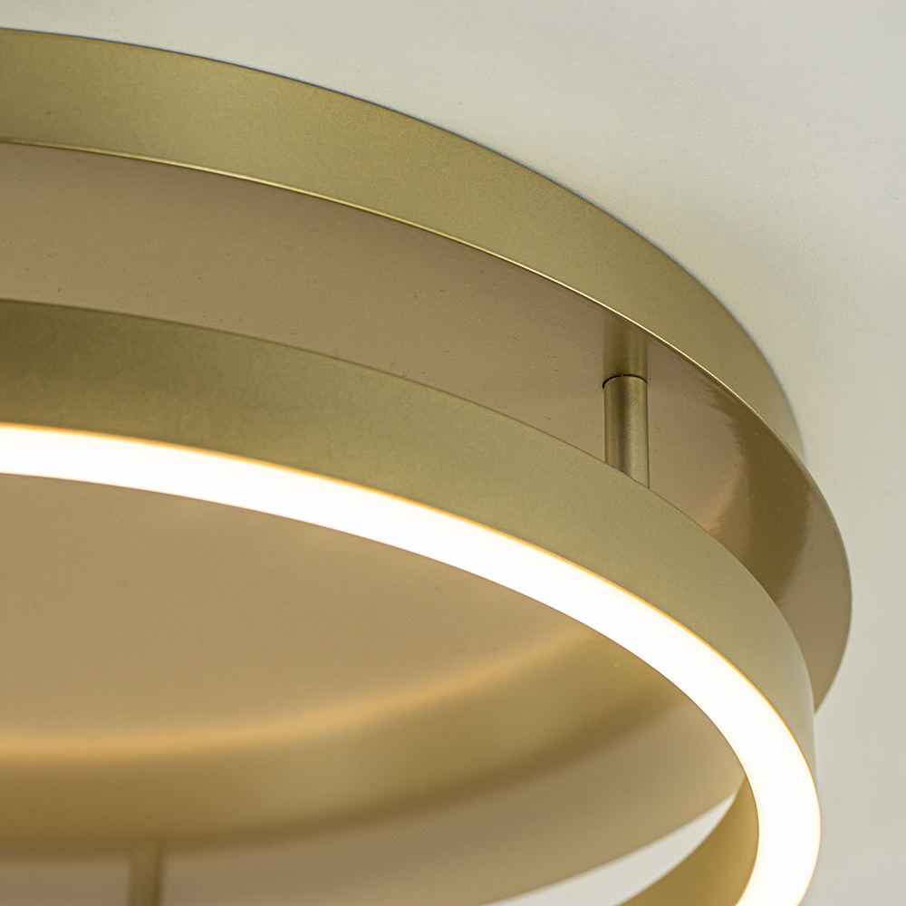 – afm: Ø47×10 cm – bevestiging: Ø45×3,5 cm – metaal – goud – geïntegreerd LED – 2700 Kelvin – 900 lumen – dimbaar (exclusief)