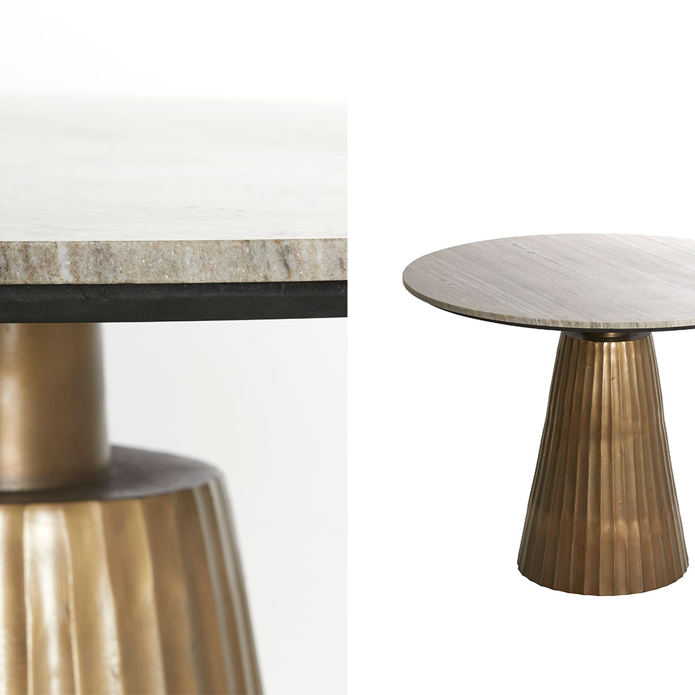 Homepagina / Wonen / Eettafels / ronde moderne eetkamertafel Rianne in marmer anitque en brons
