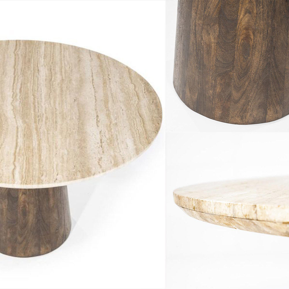 Omdat travertin een natuurproduct is, heeft elke tafel zijn eigen unieke tekening en kleurnuances — zo ontvang je altijd een authentiek en one-of-a-kind exemplaar dat nét zo mooi is als op de foto.