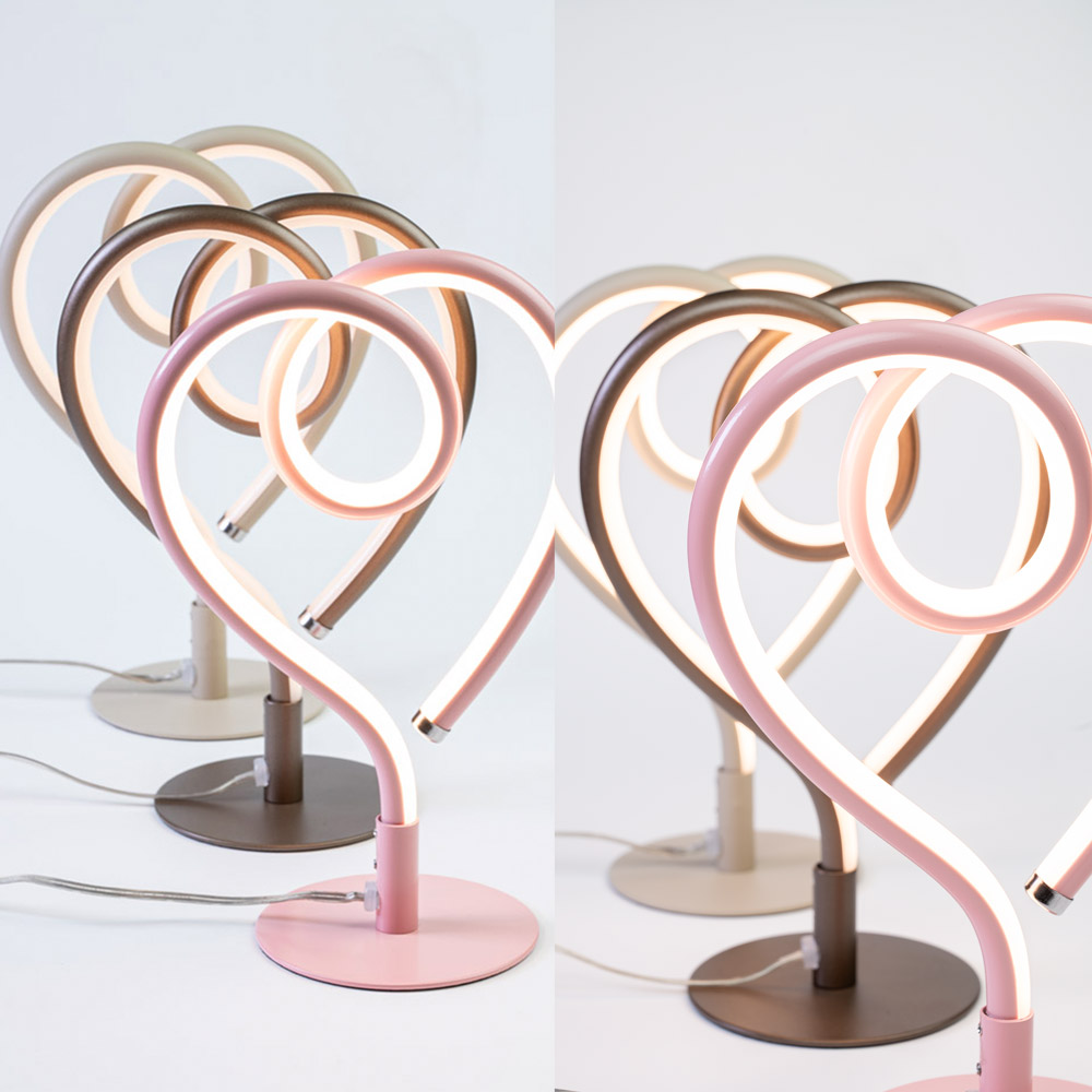 De Lovie tafellamp is een speelse en moderne eyecatcher die direct sfeer brengt in elke ruimte. Het elegante hartvormige lichtobject geeft een warm en zacht licht en is perfect voor op een nachtkastje, dressoir, bureau of als subtiel sfeerlampje in de woonkamer. Dankzij het compacte formaat past de lamp moeiteloos in kleinere ruimtes, terwijl het design toch direct opvalt.