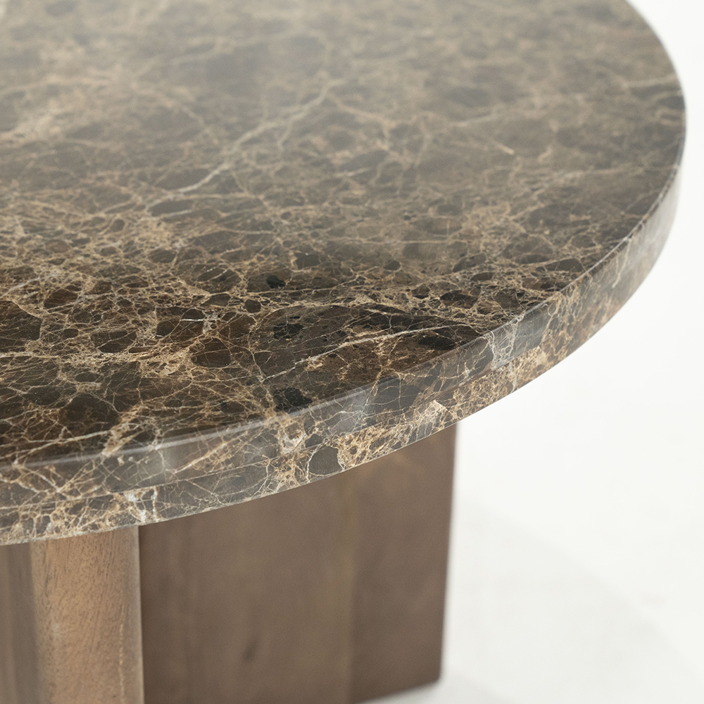 Details: – Afmetingen: Ø60×38 cm – Materiaal: Mangohout & marmer – Kleur: Bruin – Gewicht: 23.2 kg – Afwerking: Gelakt & Gepolijst