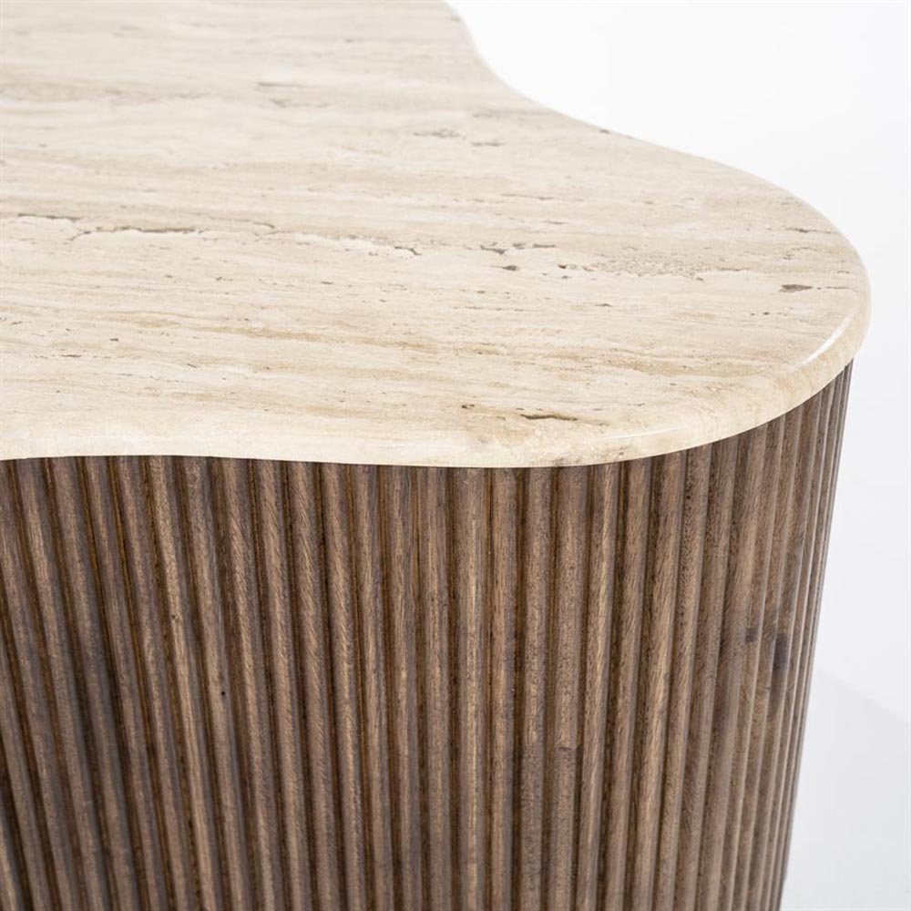 – afmetingen: 83 x 72 x 34 cm – mango hout en travertin – bruin – gewicht: 31 kg