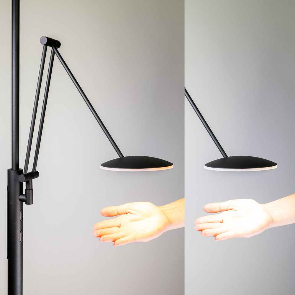 Het bovenlicht bestaat uit twee afzonderlijke lichtdelen die je onafhankelijk van elkaar kunt richten. Hiermee creëer je indirect licht richting het plafond of juist een meer gerichte sfeer. Het neerwaartse licht functioneert uitstekend als leeslicht. Alle lichtpunten zijn traploos dimbaar en instelbaar in lichtkleur, eenvoudig te bedienen via de knopjes op de lamp zelf. Zo stem je het licht moeiteloos af op elk moment van de dag.
