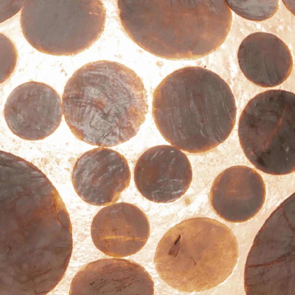 – De maximale hoogte van de lamp is 140 centimeter – De lamp heeft een diameter van 60 centimeter – De hoogte van de kap is 31 centimeter – Capiz schelpen ingelegd in hars – Geschikt voor energiezuinige lichtbronnen