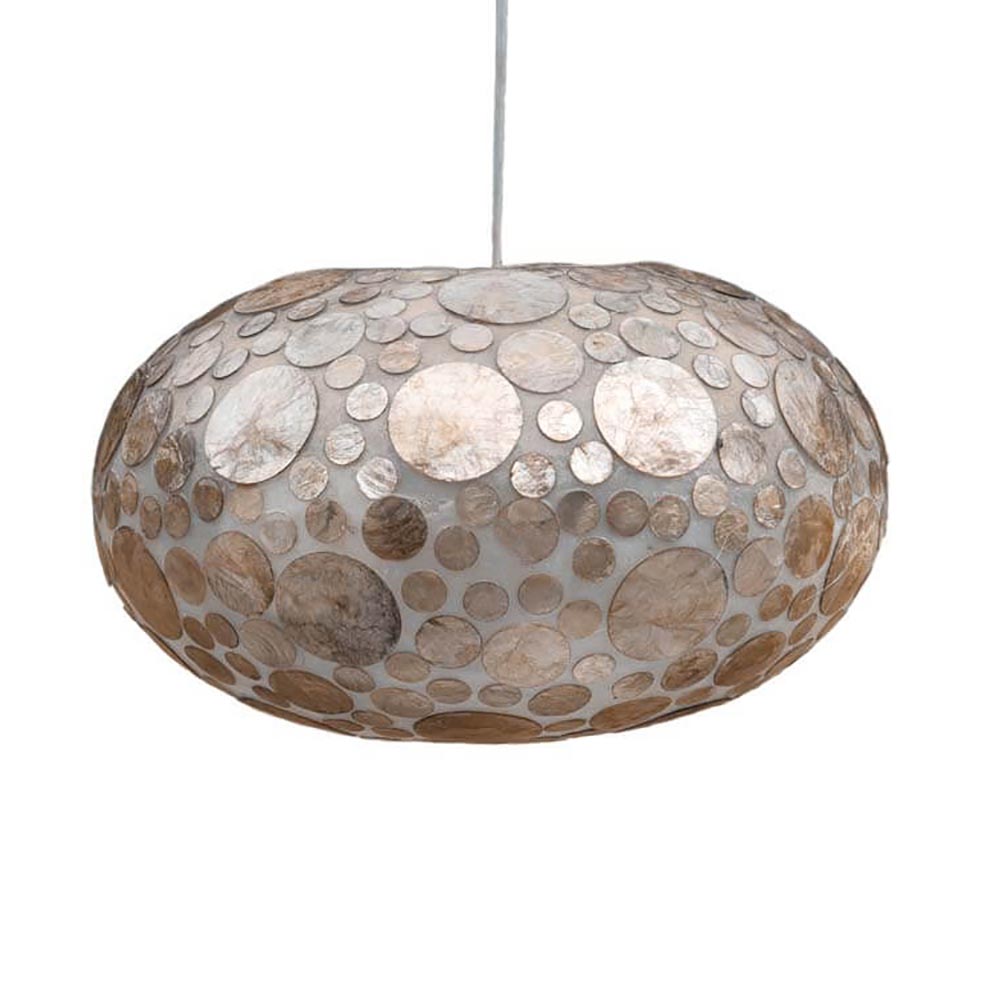 – De maximale hoogte van de lamp is 140 centimeter – De lamp heeft een diameter van 40 centimeter – Capiz schelpen ingelegd in hars – Geschikt voor energiezuinige lichtbronnen