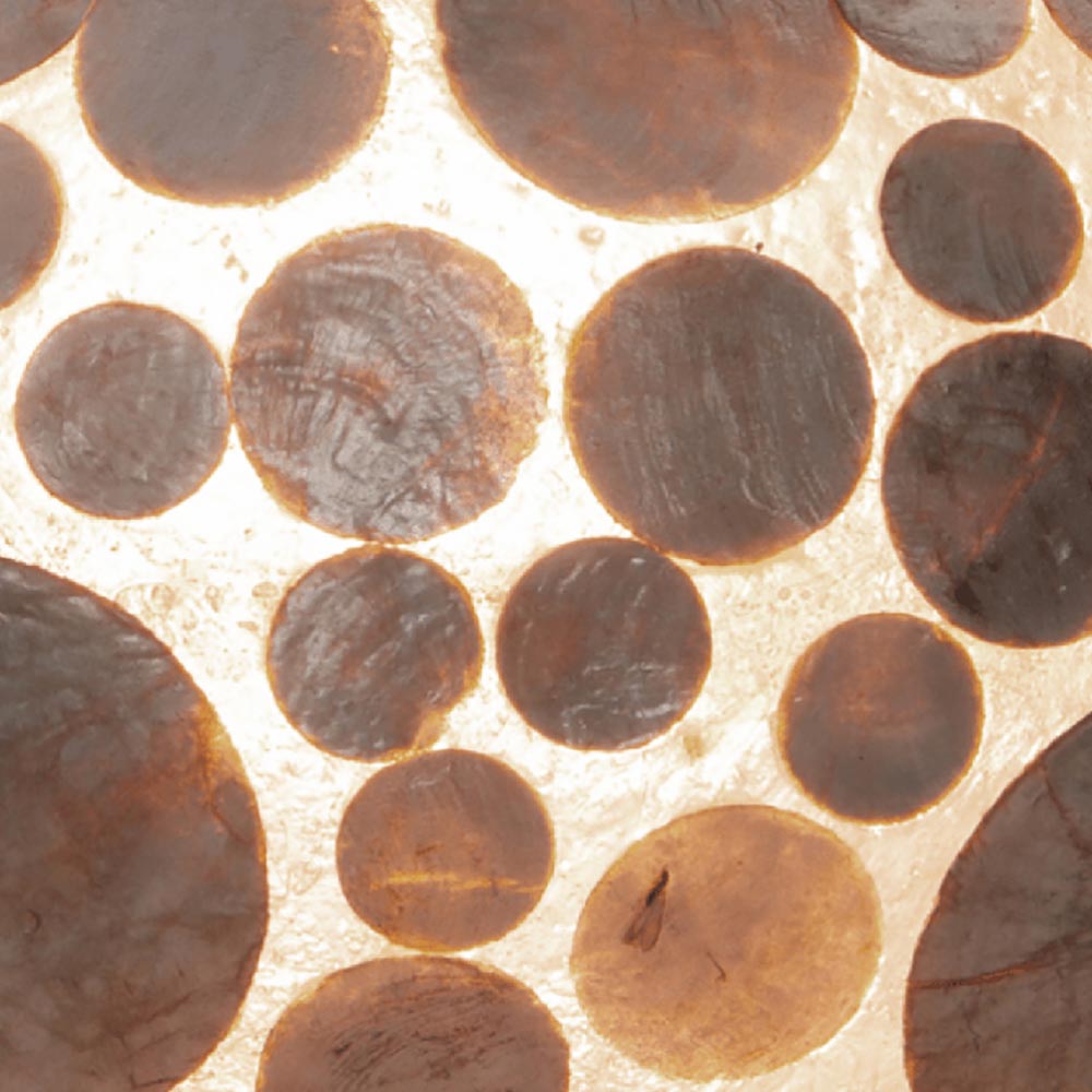 Deze sfeervolle vloerlamp brengt je meteen naar het strand. De staande lamp is gemaakt van Capiz schelpen die in verschillende groottes zijn verwerkt. De schelpenlamp heeft een mooie gouden kleur zodra deze uitstaat maar wanneer de lamp wordt aangezet geven de schelpen een silouet en creërt de lamp een warme en sfeervolle verlichting. De vloerlamp staat op een zwarte voet en heeft een zwart snoer met schakelaar.