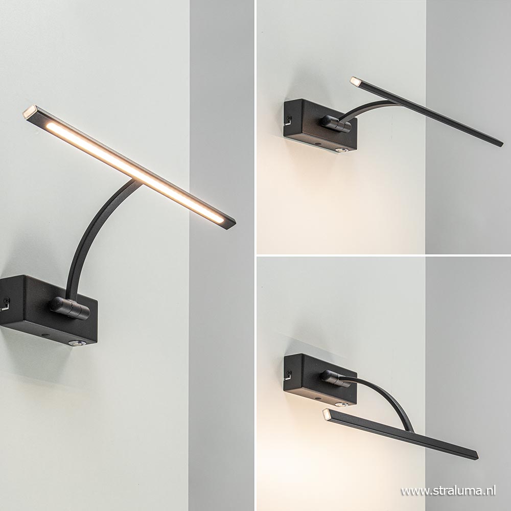 De perfecte wandlamp voor het uitlichten van een schilderij of foto. De moderne schilderijverlichting heeft een strak en minimalistisch design en wordt gemakkelijk op de wand gemonteerd. Ideaal aan de LED lamp, is dat wanneer deze niet direct op een stroompunt kan worden aangesloten, de bevestiging is voorzien van een gat aan de onderzijde zodat er aan snoer aan kan worden gezet. Wordt het gat niet gebruikt, dan is deze netjes afgewerkt met een zwart dopje. Naast deze aansluiting bevindt zich ook de touchdimmer. Met een druk op de knop gaat de lamp aan of uit, houdt u uw vinger langer op de knop, dan dimt de lamp net zo lang tot u weer loslaat. Het mat zwarte armatuur is te kantelen zodat deze de juiste belichting boven een schilderij of foto kan geven. De moderne wandlamp kan ook prima dienen als bedlampje boven het hoofdbord.
