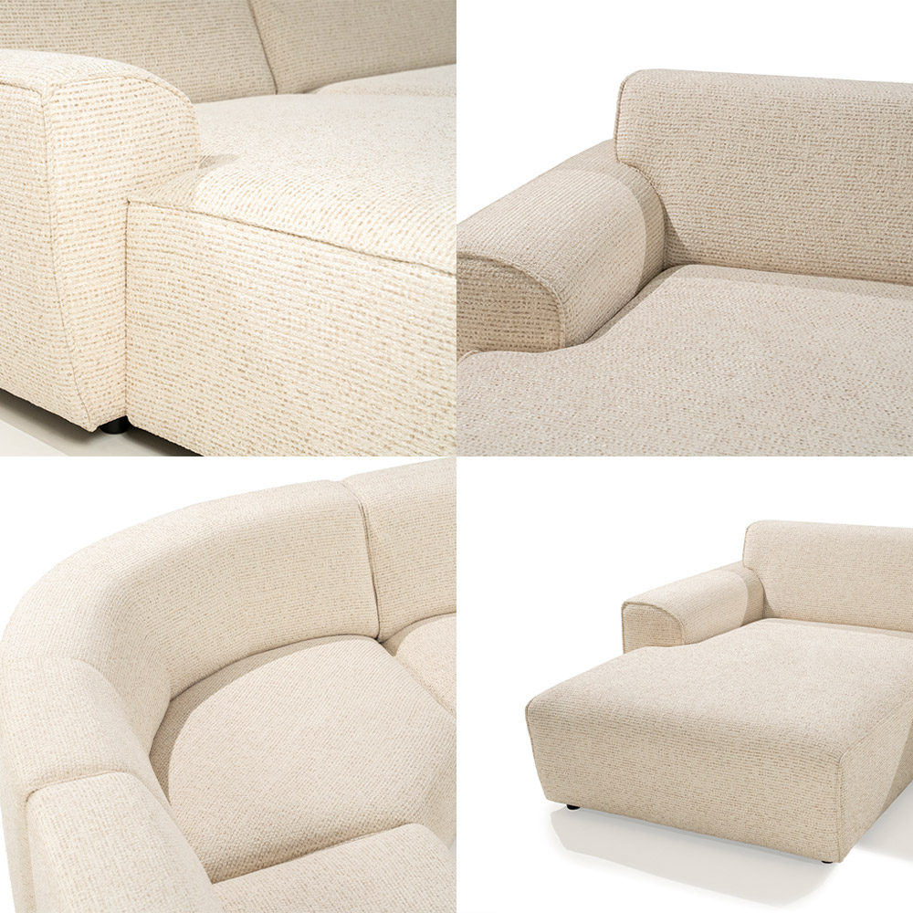 De Sterre elementenbank is een stijlvolle, modulaire bank met een uitnodigend karakter. De ronde zithoek en zachte belijning geven het ontwerp een vriendelijke, organische uitstraling die perfect past in een modern, Scandinavisch of hotel-chic interieur. Dankzij de royale zitdiepte en comfortabele zithoogte is Sterre ideaal voor lange avonden ontspannen zitten.