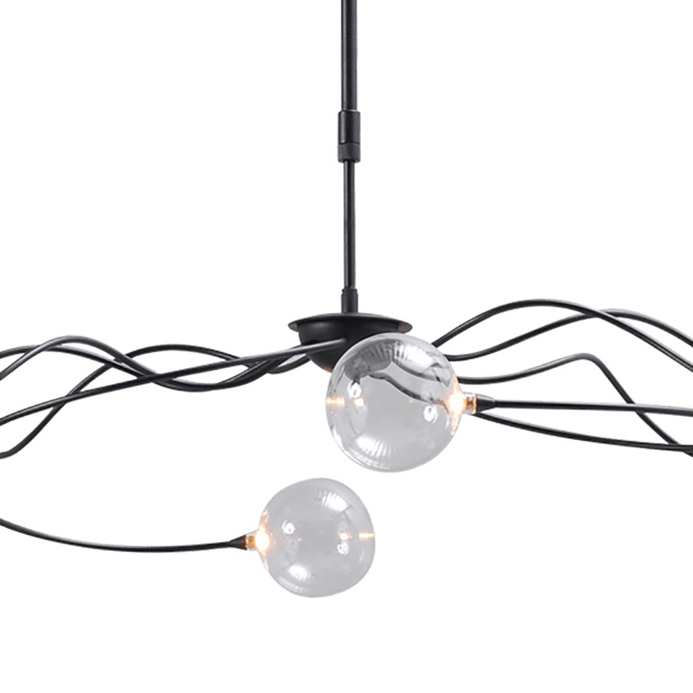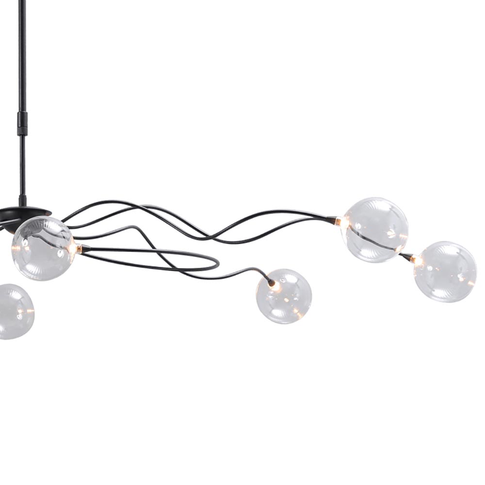 Een mooie eyecatcher deze grote hanglamp. De sierlijke lamp is mooi om naar te kijken maar ook zeer functioneel. De hanglamp is gemaakt van metaal en voorzien van een zwarte finish. Dit is mooi gecombineerd met helder glazen bollen, wat de lamp prima geschikt maakt voor diverse woonstijlen. De LED hanglamp is in hoogte verstelbaar en is dimbaar dmv de dimmer onderop het armatuur. Een keer drukken en de lamp gaat aan of uit, houdt u de dimmer langer ingedrukt dan dimt deze zowel in intensiteit als in temperatuur. De hanglamp is namelijk voorzien van een dim to warm functie. Ideaal voor boven een grote eettafel of vergadertafel.