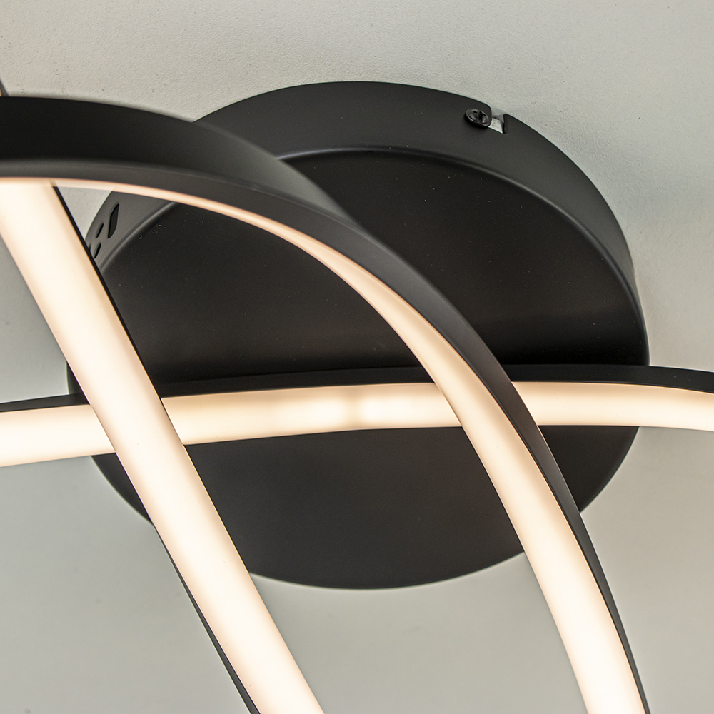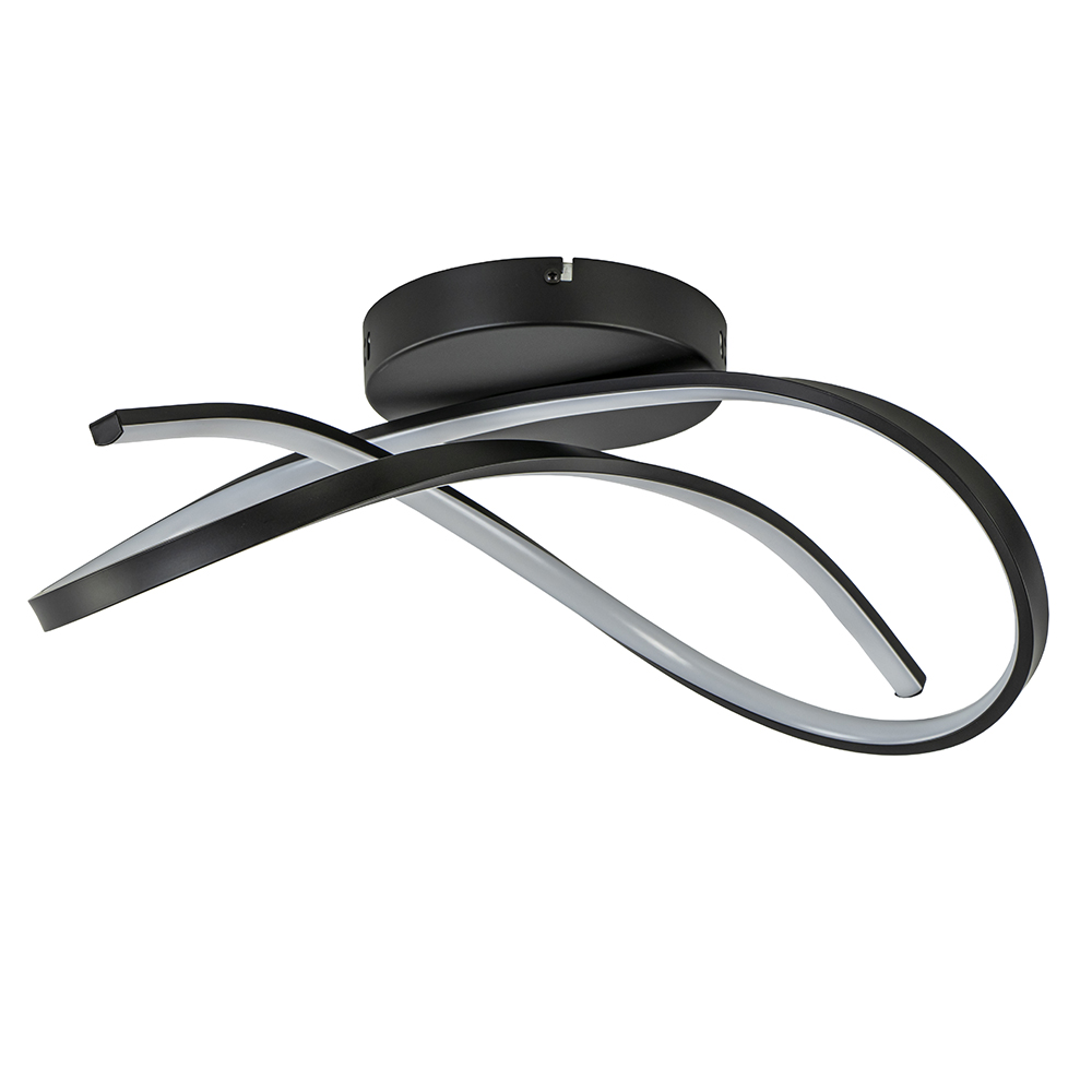 Ideaal voor in de hal of slaapkamer. Deze moderne plafondlamp heeft een sierlijk design dat is vormgegeven als de lusjes van een knoop. Het armatuur is gemaakt van metaal en uitgevoerd in het zwart. De lusjes zijn volledig voorzien van geïntegreerd LED welke dmv een externe dimmer kan worden gedimt (exclusief). De verlichting is met 2700 Kelvin warm wit van kleur voor een sfeervol geheel.