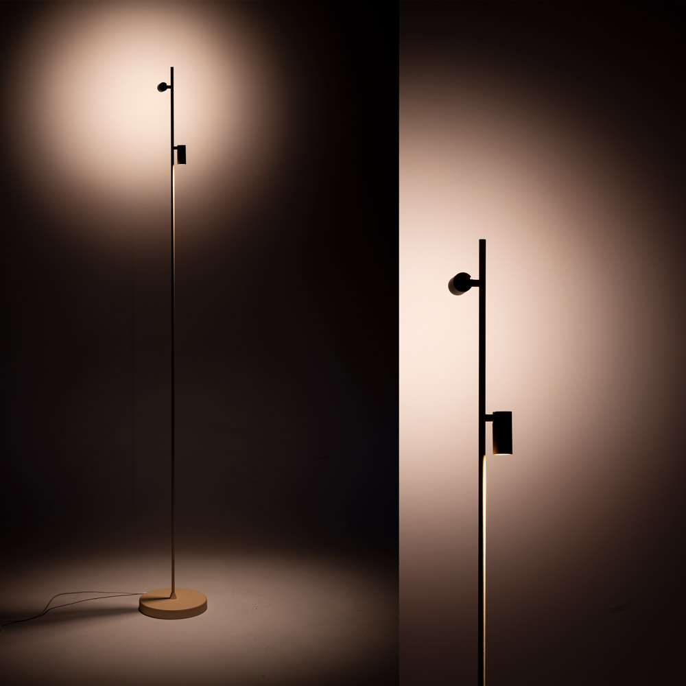 Highlights • Slanke vloerlamp met 2 richtbare spots • Geïntegreerde LED met warm licht (2700K) • Dimbaar via voetschakelaar met geïntegreerde dimfunctie • Verkrijgbaar in mat zwart of mat beige • Ideaal voor leeslicht én sfeervolle accenten