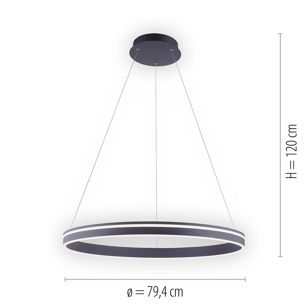 – Afmetingen: Ø79CM x 120CM – Bevestiging: Ø20CM x 4CM – Geïntegreerd LED – Antraciet – CCT – Dimbaar (inclusief) – 2600 Lumen – 2700-5000 Kelvin – Inclusief afstandsbediening – Geheugenfunctie