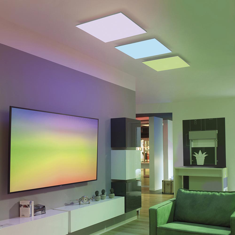 Door middel van het evenwichtig verdeelde licht levert dit LED paneel een rustige lichtverspreiding. Ook de randen worden meeverlicht. Dit geeft het effect alsof de lamp zweeft. De panelen kunnen uitgebreid worden en sluiten naadloos in elkaar over als u er meerdere naast elkaar zou hangen. Dit paneel kan in alle kleuren van de regenboog ingesteld worden. Tevens kan zowel de lichtsterkte als de lichtwarmte aangepast worden. Hij is eenvoudig te bedienen met de bijgeleverde afstandsbediening en de app. De plafondpaneel kan geïntegreerd worden in bestaande smart systemen met een Zigbee standaard.