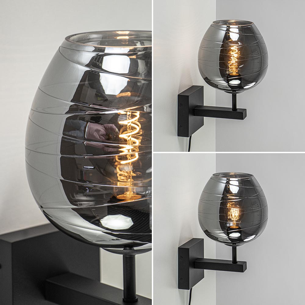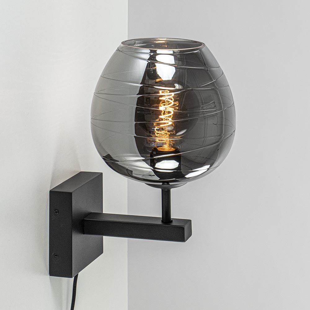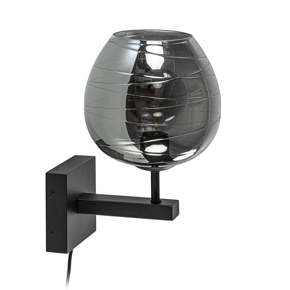 Homepagina / Lampen / Wandlampen / Smoke glazen wandlamp met zwart inclusief snoer