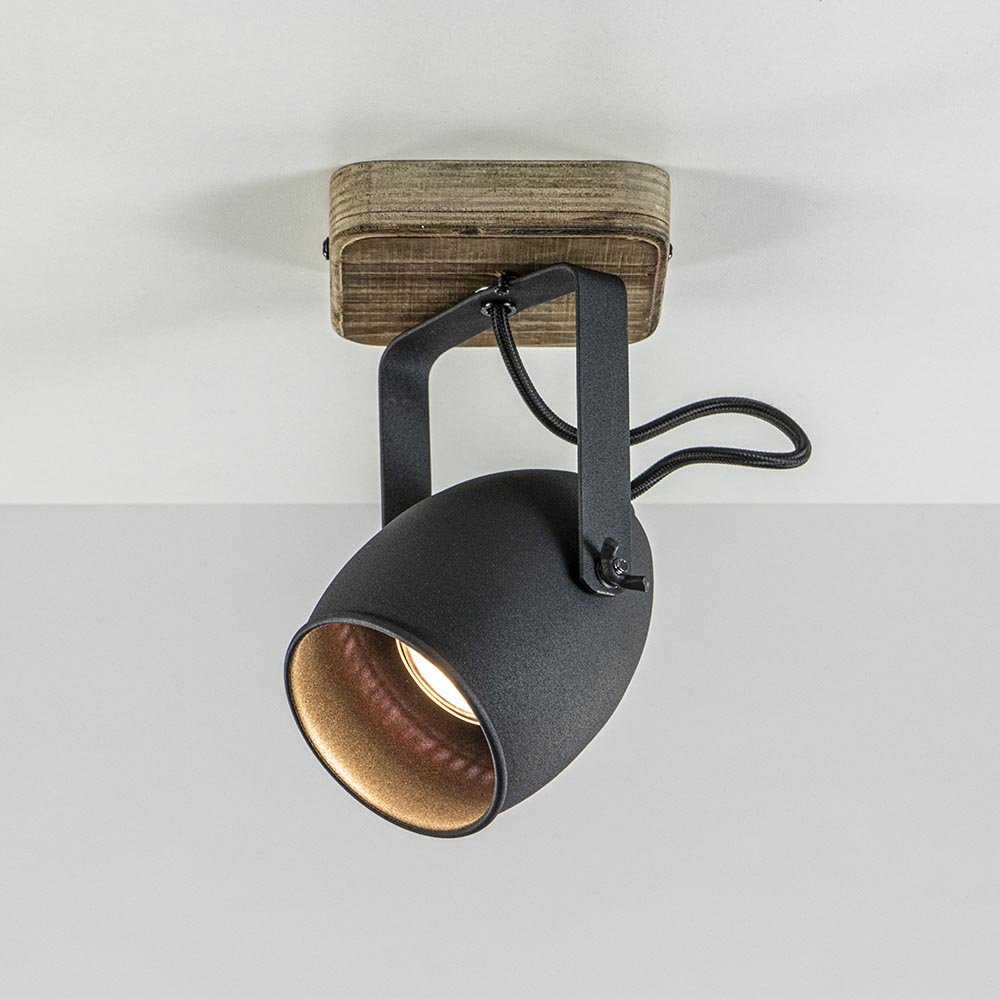 Homepagina / Lampen / Opbouwspots / Spot 1-lichts zwart met hout
