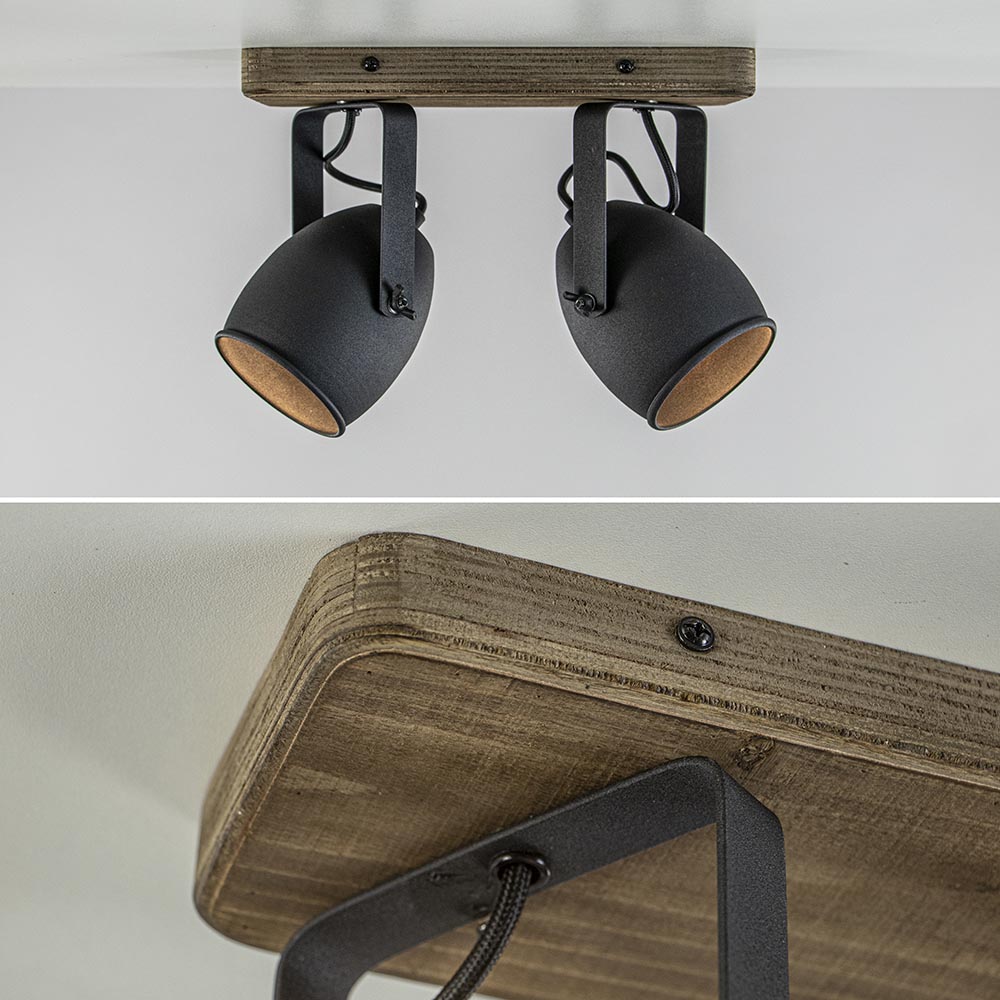Homepagina / Lampen / Opbouwspots / Spot 2-lichts zwart met hout