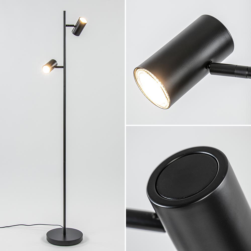 – hoogte: 142 cm – spots: Ø5,5×10 cm – voet: Ø23×4 cm – metaal – mat zwart – inclusief GU10 LED – 3-standen dimbaar – 2700 Kelvin – 900 lumen – zwart snoer: 200 cm