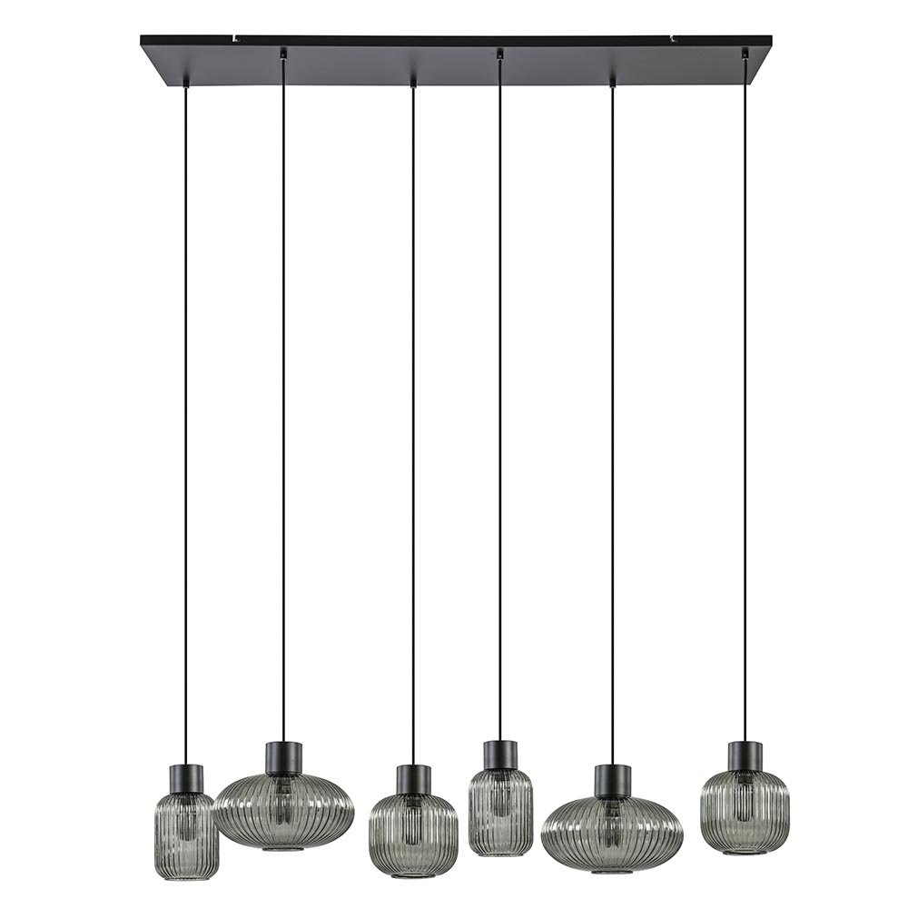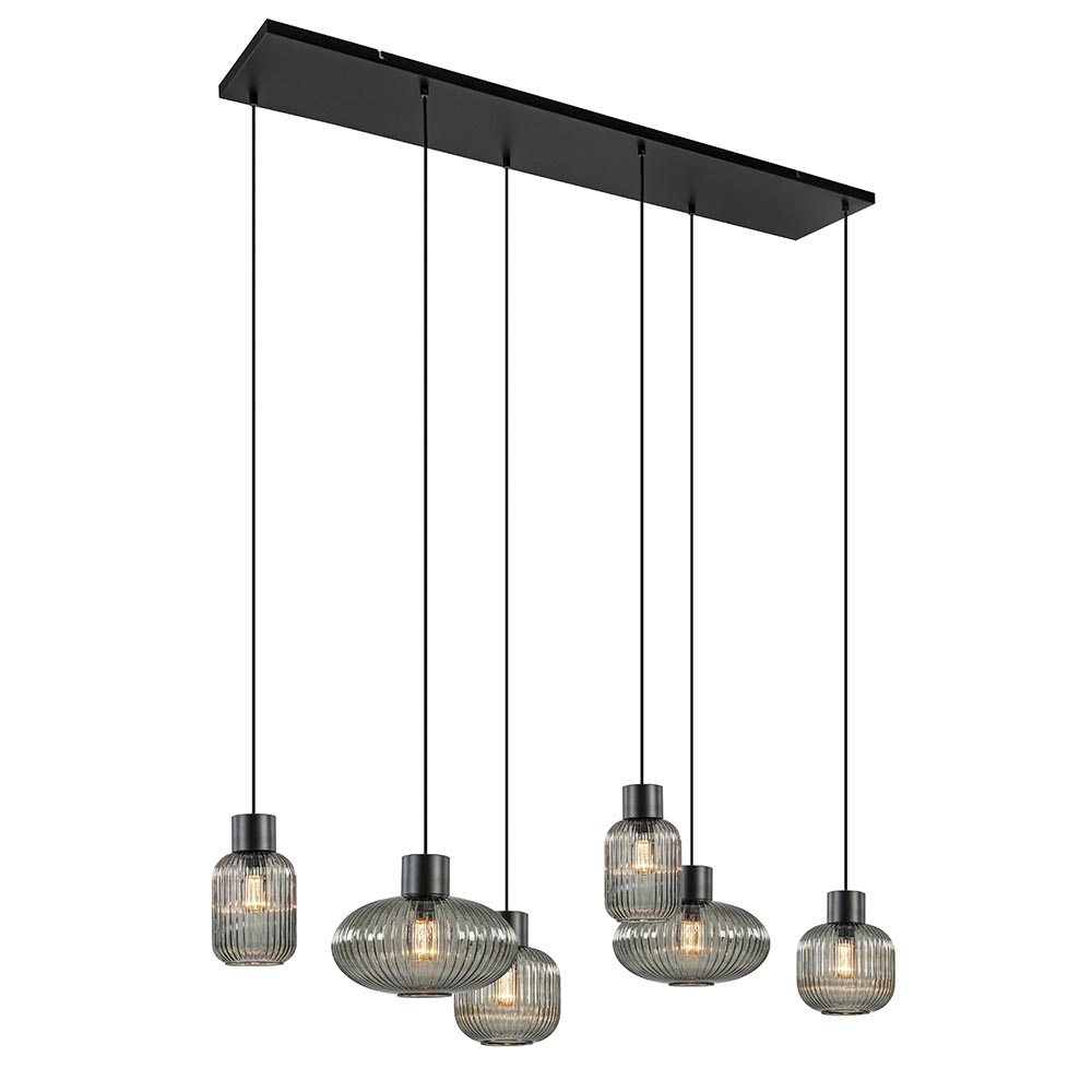 Homepagina / Lampen / Eettafellampen / Stijlvolle 6-lichts eettafelhanglamp zwart met smoke glas