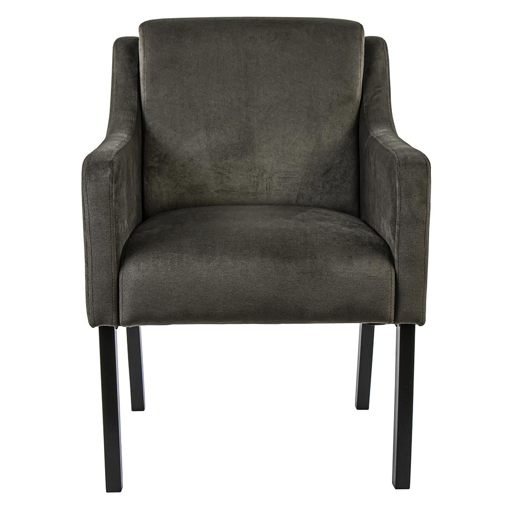 Deze stijlvolle eetkamerstoel zorgt ervoor dat een avondje dineren geen probleem is. De stoel heeft een hoogwaardig zitcomfort en biedt door de armleuning een fijne ondersteuning. De armstoel heeft een stoffen zitting die is uitgevoerd in het velours bruin. De poten zijn van hout en uitgevoerd in het zwart. Deze combinatie maakt de eettafelstoel prima geschikt voor diverse woonstijlen, van landelijk tot chique of klassiek.